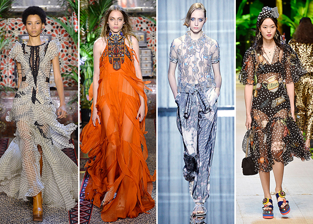 Na sequência dos shows eu me apeguei a uma tendência que apareceu de formas bem diferentes, mas sempre muito marcante: A transparência. E uma transparência que cria a ideia de leveza, tanto em vestidos e saias flutuantes, como nos detalhes das mangas e blusas.