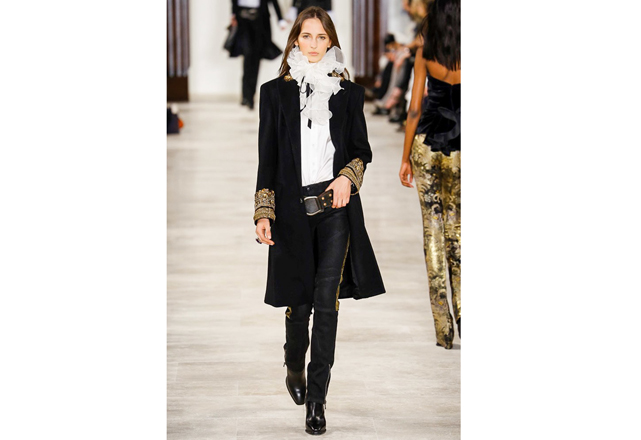Dando início ao último dia de #NYFW, a Ralph Lauren desfilou nessa quinta-feira (18.02) sua coleção de inverno 2016/17 com as silhuetas características da marca. Mantendo a tradição de seus ternos clássicos, a grife apresentou um inverno sóbrio e com cores que claramente representam a estação. Terrosos e pretos pontuam peças que exploram uma silhueta mais ampla em paletós e trenchs e a já conhecida pantacourt. As peças trazem tecidos como veludo e couro com shapes amplos e assimétricos nos detalhes – como nas golas, que querem o foco só para elas nesta temporada. Em nossa galeria, você confere os looks apresentados pela grife.