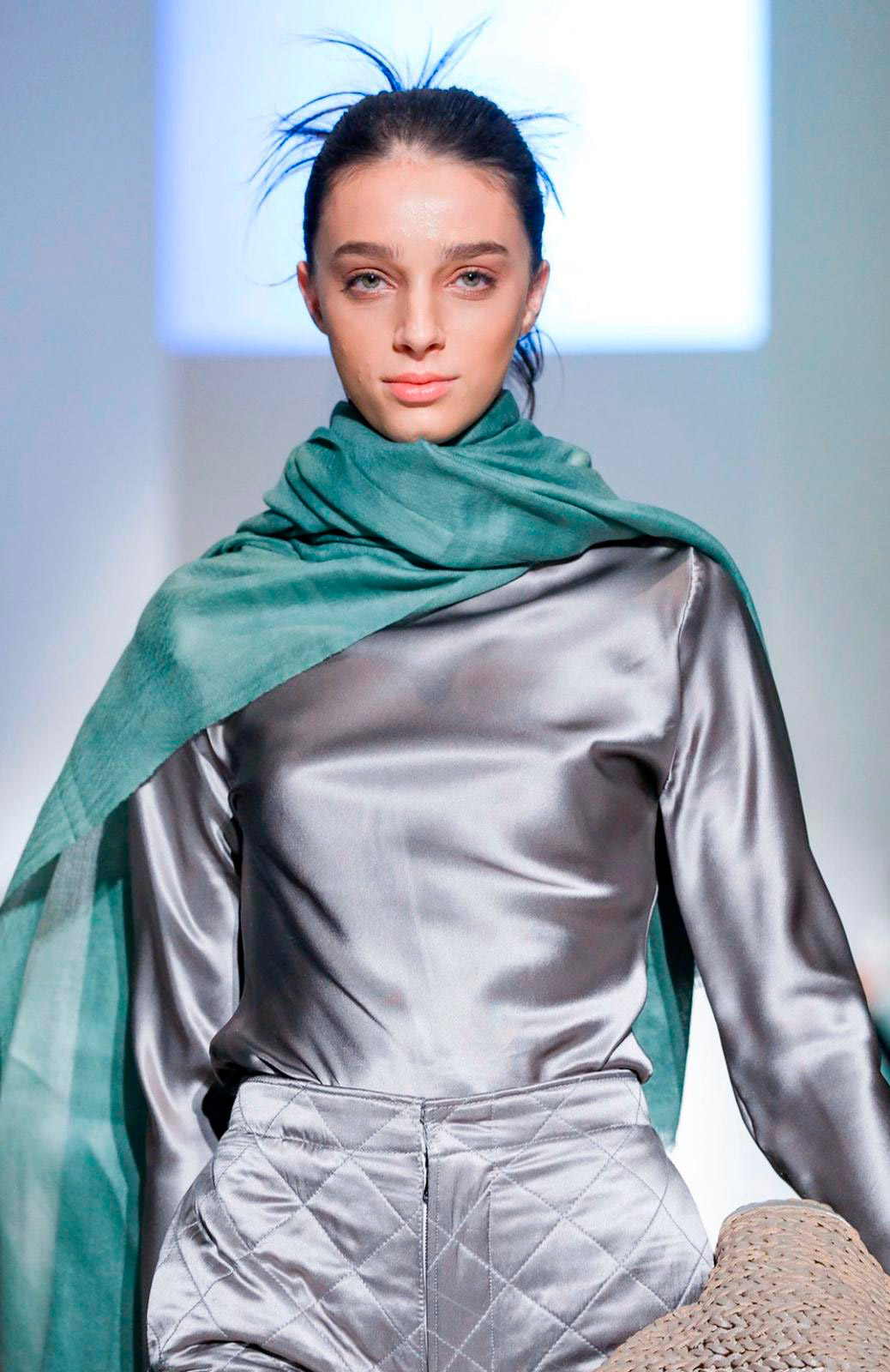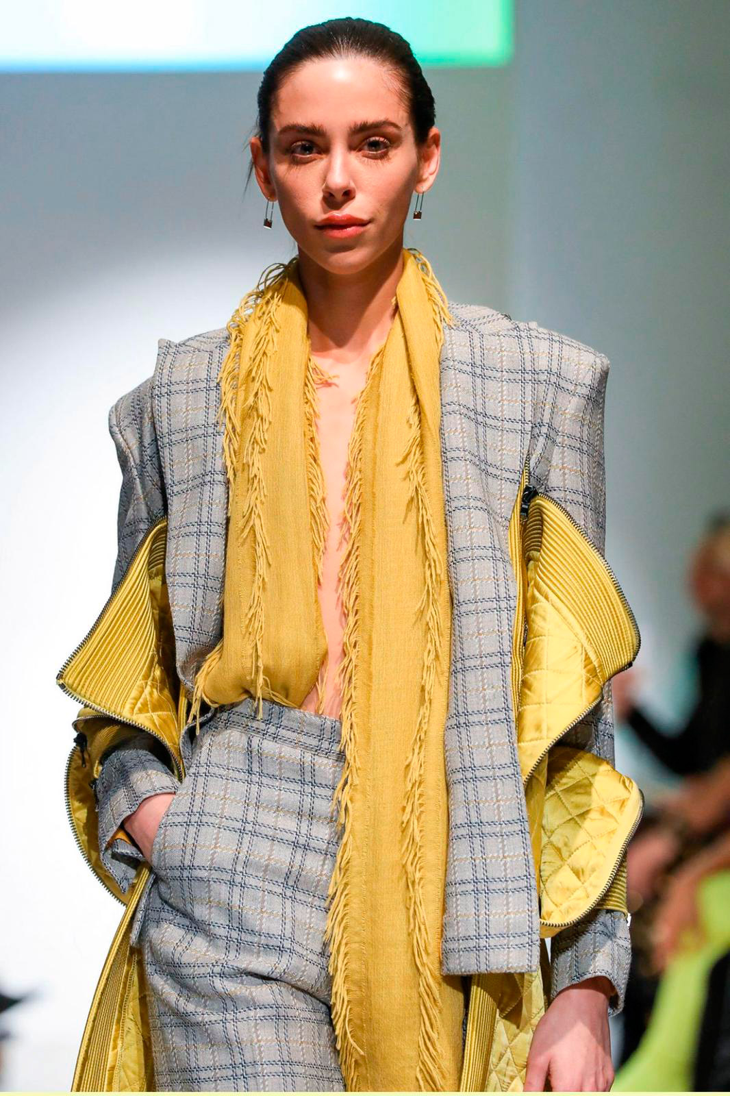 Adriana Lerner, criadora da marca de xales Arrivals Gate e colaboradora da Bazaar, fez uma collab com o estilista Sebastian Grey para desenvolver 12 xales de cashmere. Coordenados com as cores da coleção, as peças foram apresentadas no desfile, que aconteceu esta semana, durante a New York Fashion Week.