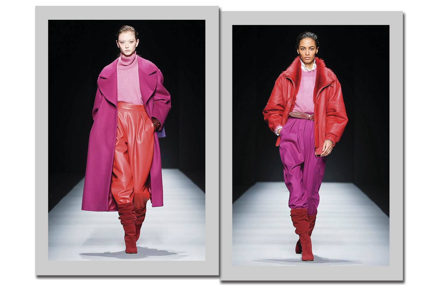 Mix ousado de cores, o vermelho + rosa foi um dos hits dos red carpets nas principais temporadas de premiação de cinema em 2020. E, no que depender da moda italiana, você vai mesmo usar este combo ousado neste ano.