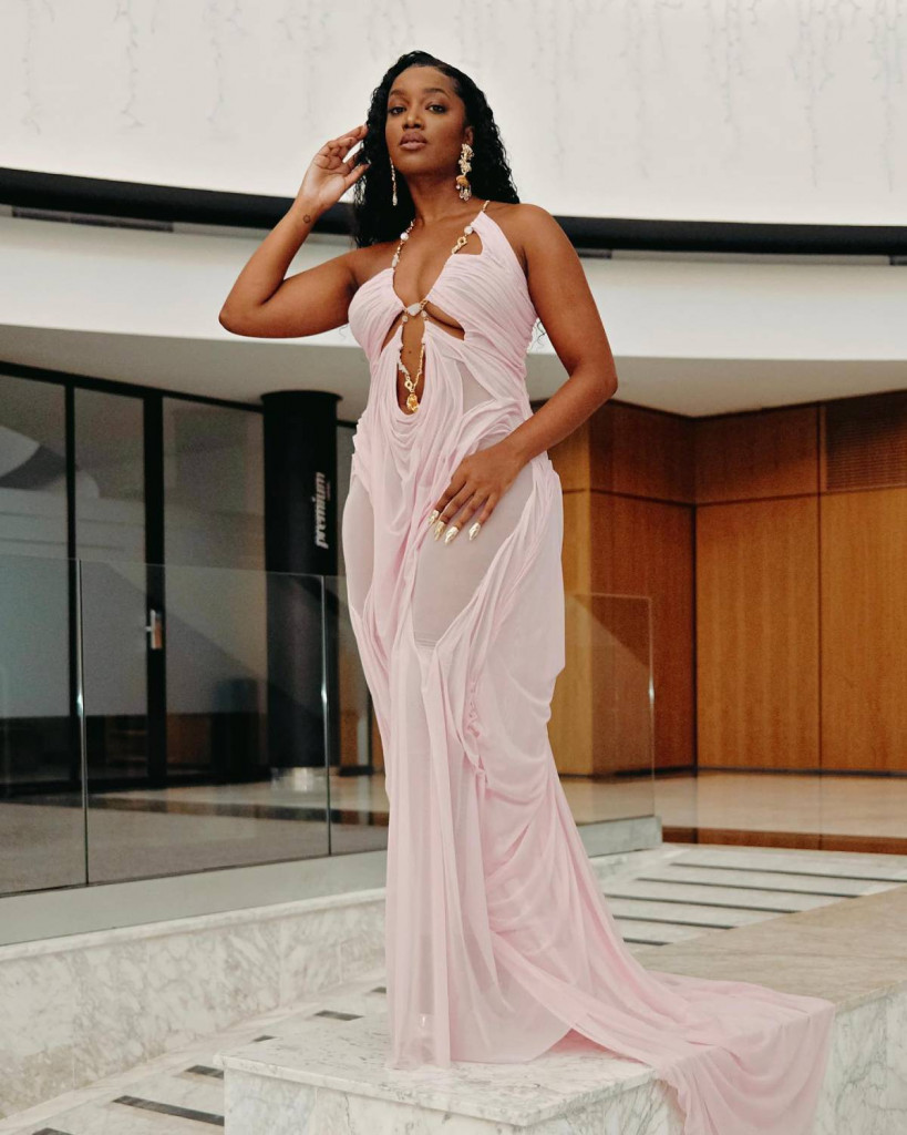 As peças transparentes também são queridinhas da noite, já que combinam com o verão brasileiro e com o clima praiano. Além da sobreposição de materiais leves ou com recortes, como o vestido de renda usado por Sabrina Sato, as peças que imitam a aparência de tecido molhado, como a escolhida por Iza, são outra opção para chegar a este resultado.