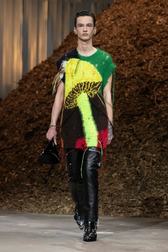 Este assunto já se destacou no universo da moda, seja com as texturas que se propõem a imitar a rede de ligação dos fungos ou com o uso dos próprios micélios como matéria-prima sustentável. A primeira opção é a que mais conversa com o desfile da marca: formas abstratas em cores vívidas, a textura criada com os tecidos, franjas representando a rede de micélios e, de forma mais literal, estampas de cogumelos.