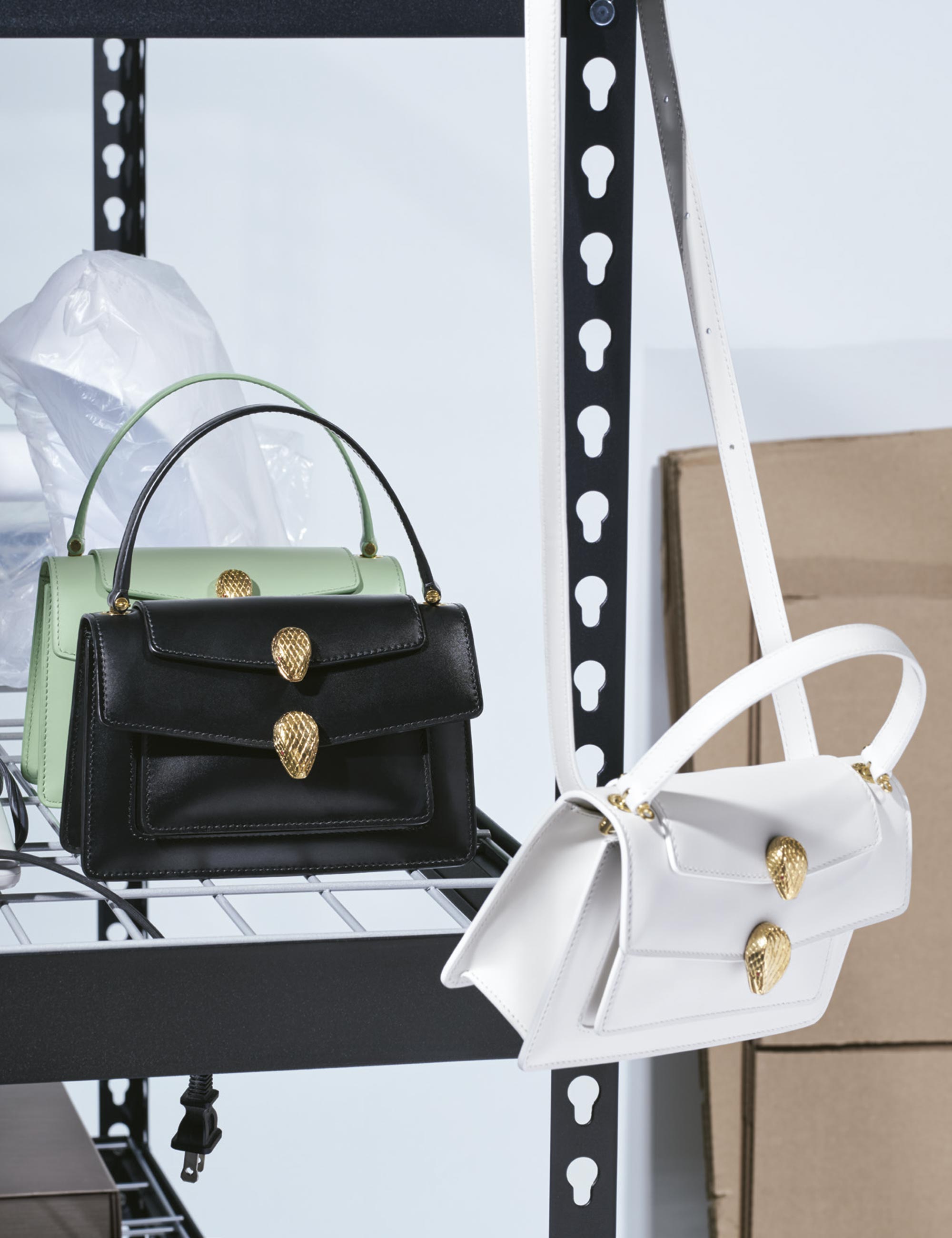Além das clássicas estampas de píton e lagarto, e de cores básicas como preto e marfim, ele apostou no verde-menta, que tem papel importante na paleta de cores. “Uma das minhas primeiras memórias da Bvlgari, de quando eu era jovem, é a da fragrância de chá verde (Au thé Vert – Green Tea). Amo o cheiro, a embalagem e a cor. Foi a primeira vez que fui exposto à marca”, relembra.