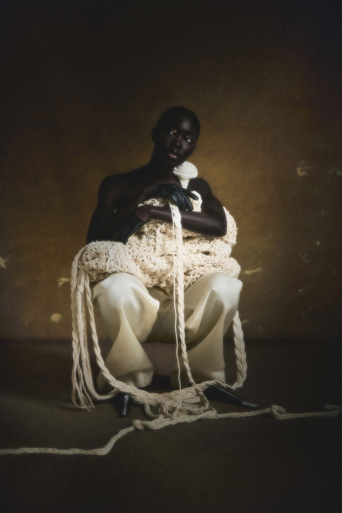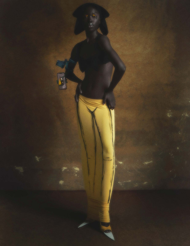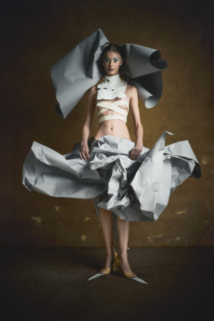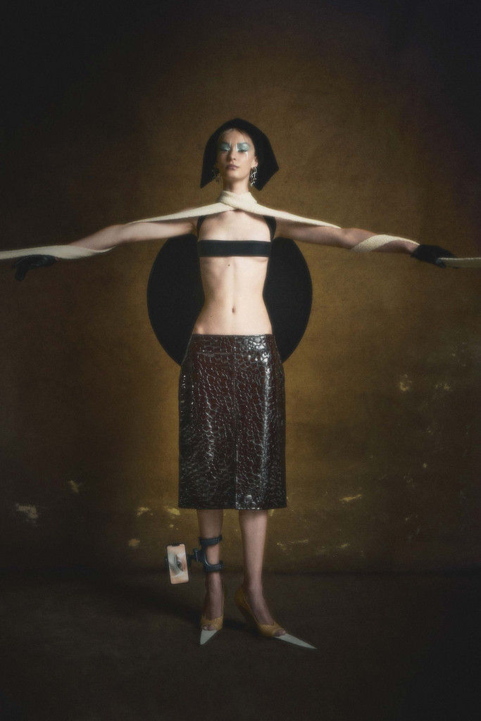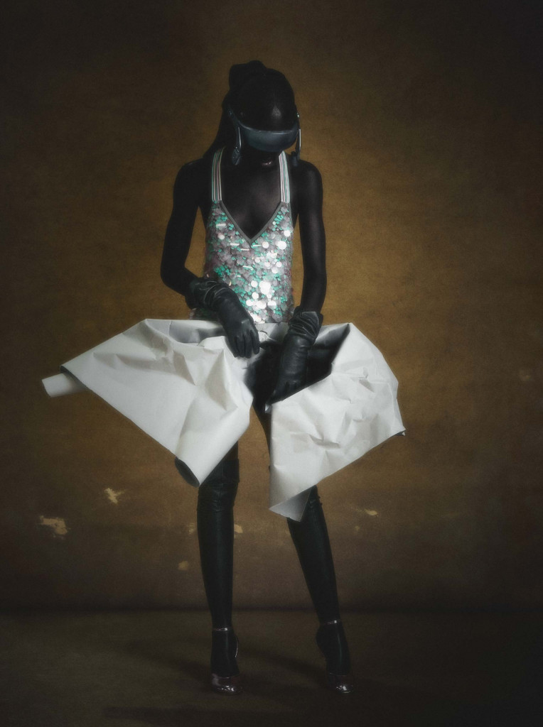 Eva veste top Alexandre Dornellas, saia Bottega Veneta e escarpin Christian Louboutin com acabamento feito pelo stylist – Foto: Bruno Unikowsky, com styling e direção criativa de Alexandre Dornellas e beleza de Henrique Azevedo
