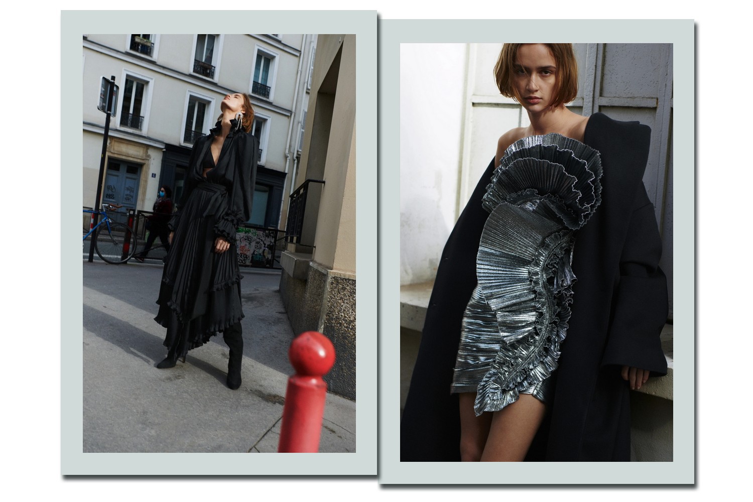 A Alexandre Vauthier saiu da balada que criou para sua coleção de alta-costura e invadiu as ruas com sua coleção de inverno 2021 carregando algumas características da festa. De uma coleção para a outra, os ombros volumoso foram replicados em camisas e blazeres, os babados e franjas ganharam versões mais delicadas e o brilho deixa de ser o protagonista.