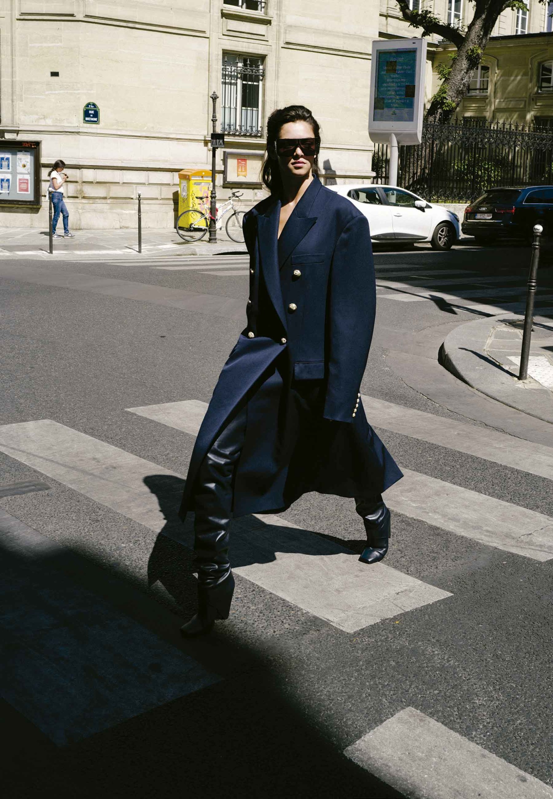 Maria Miguel (Viva Paris) usa trench-coat, óculos e botas da Balmain – Foto: Stéphanie Volpato, styling de Charlotte Even, edição executiva de Filipa Bleck, cabelo de Mélisande Page e maquiagem de Camille Siguret