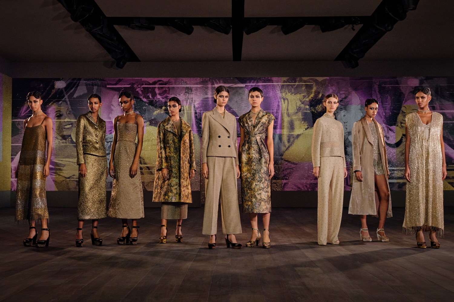 Elemento aguardado dos desfiles da marca, o cenário foi criado por Mickalene Thomas e homenageia mulheres negras que quebraram barreiras raciais, como a própria Josephine.