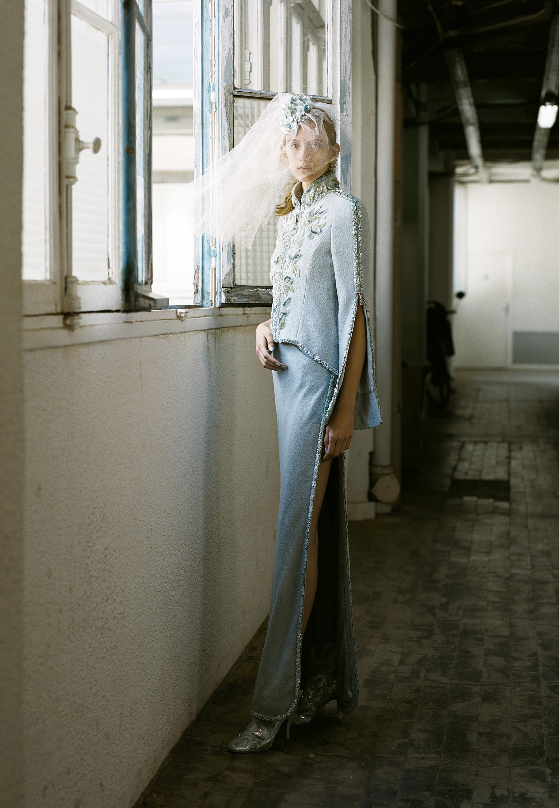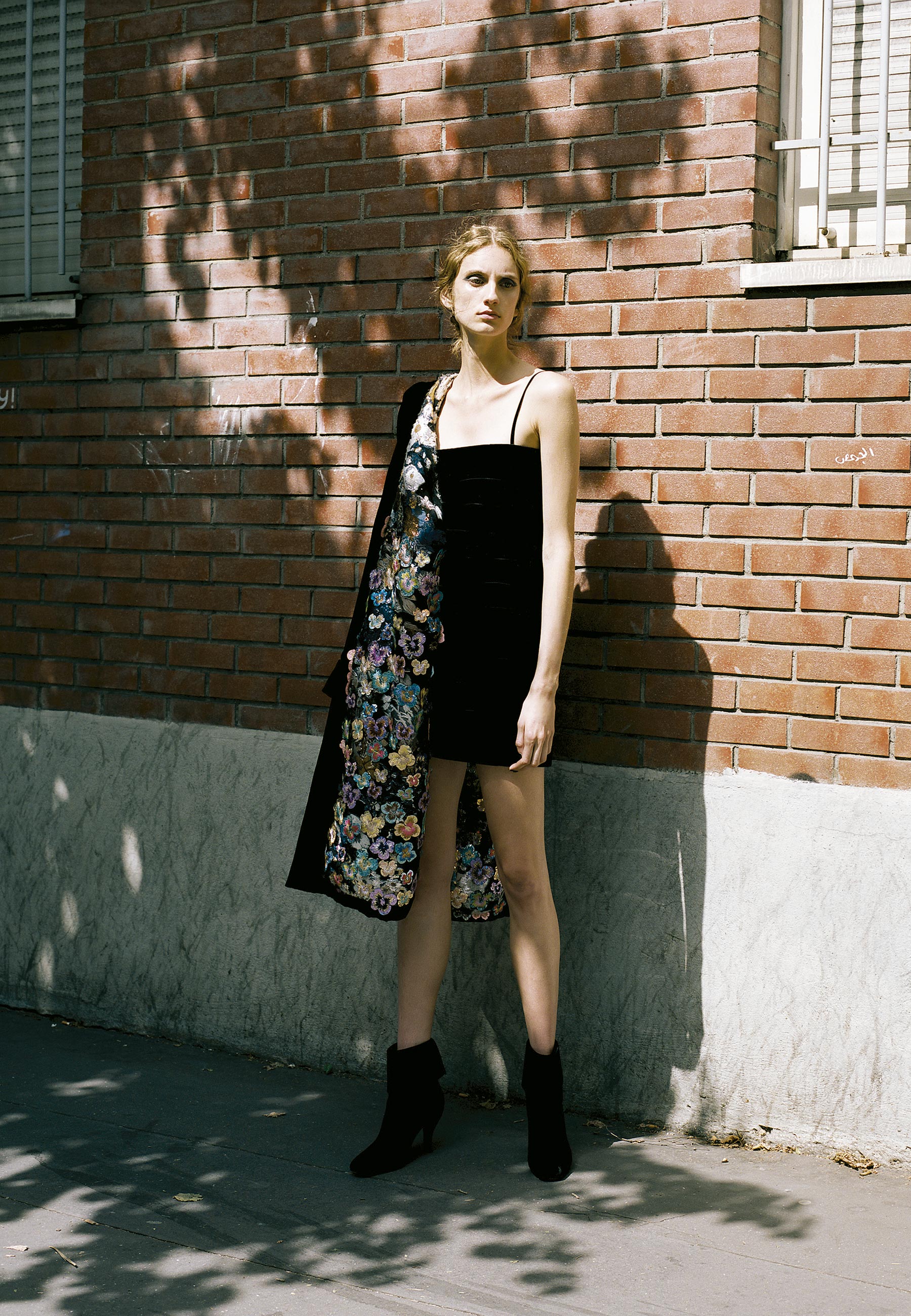 Vestido de veludo, quimono de veludo bordado com flores e botas de veludo – Foto: Stépanhie Volpato, com styling de Arthur Mayadoux