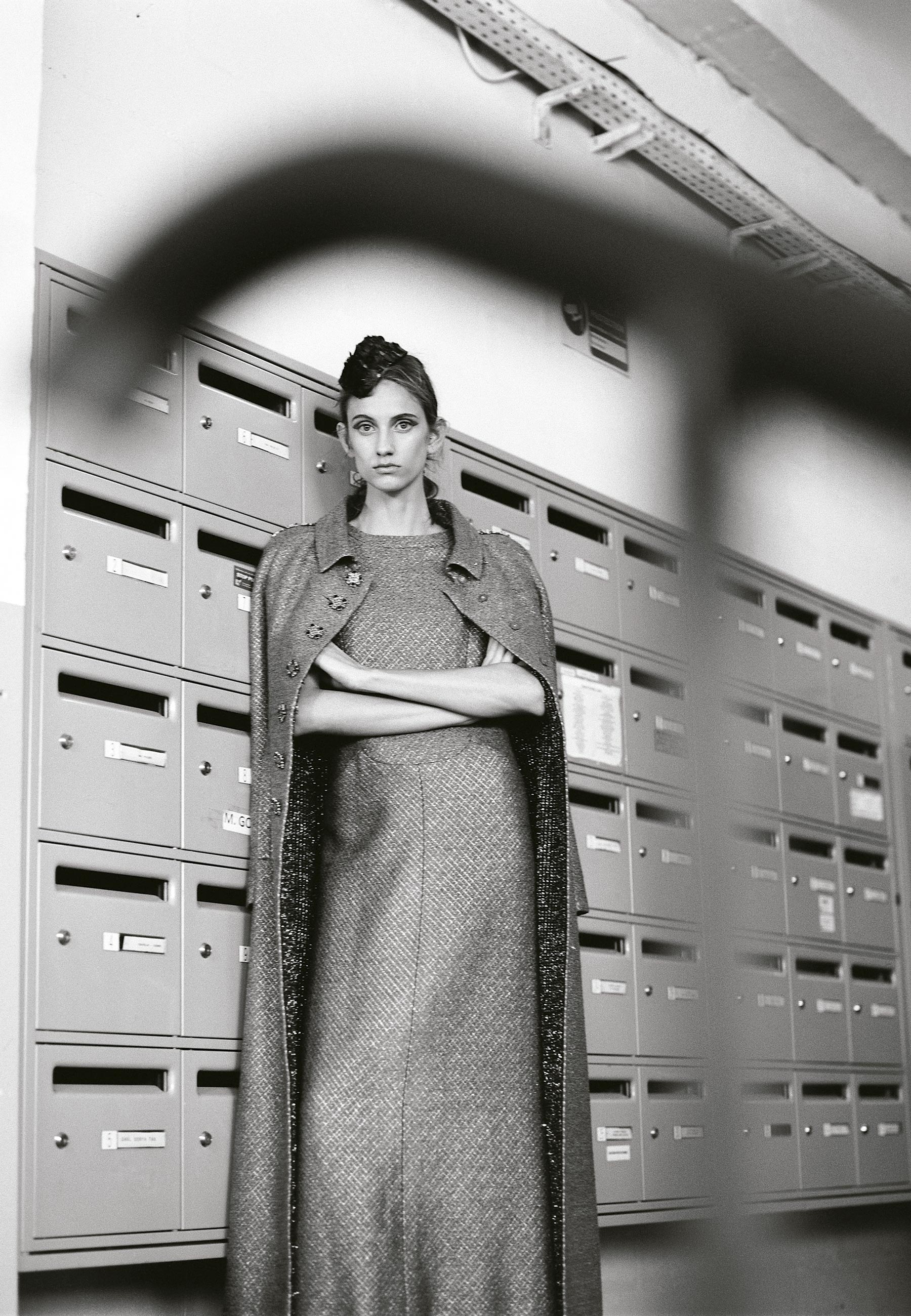 Sarah Berger (WAY) usa vestido e casaco de tweed – Foto: Stépanhie Volpato, com styling de Arthur Mayadoux