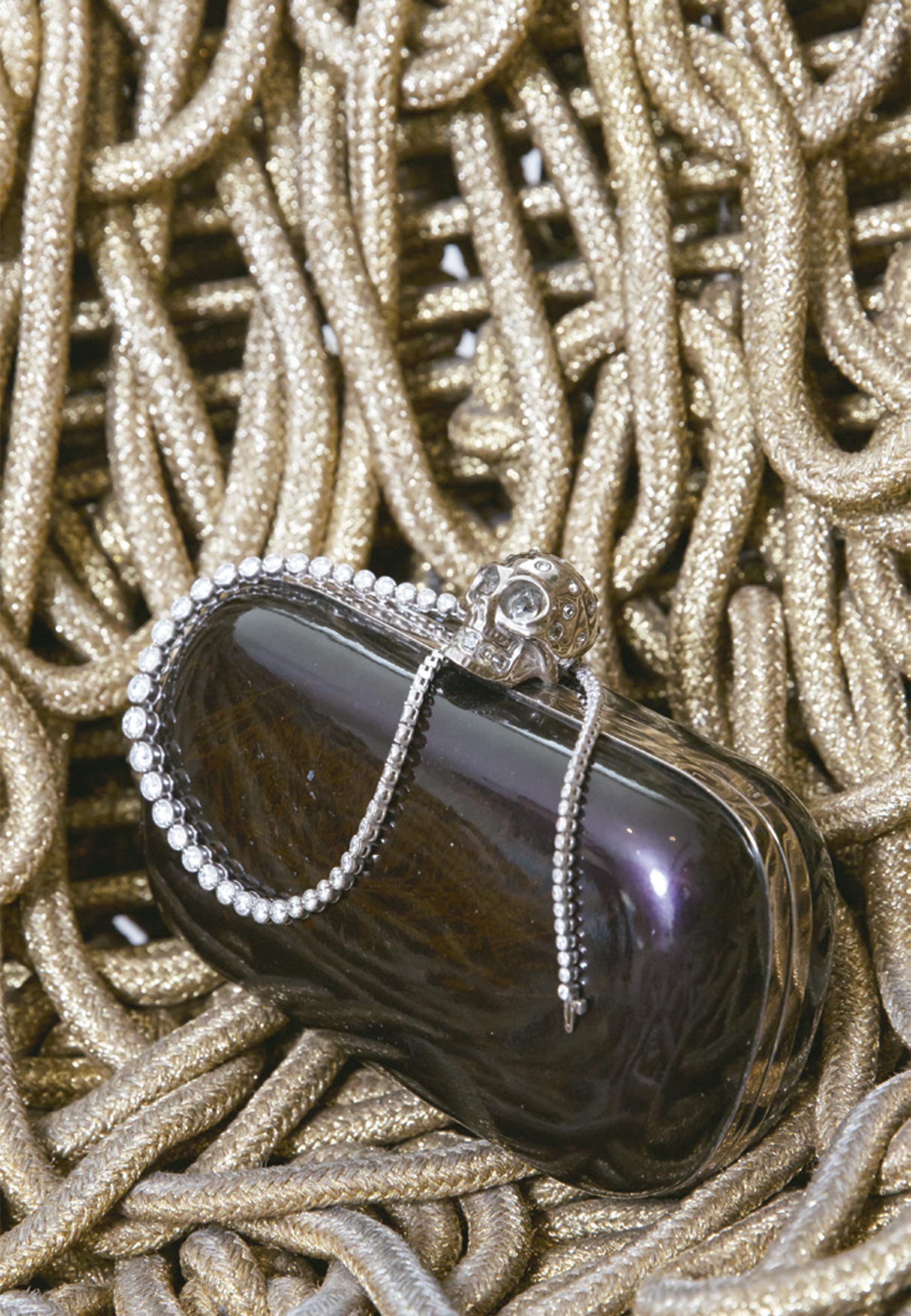Clutch Alexander McQueen e colar Andrea Colli Gem – Foto: Vinicius Postiglione, com edição de moda Rodrigo Yaegashi