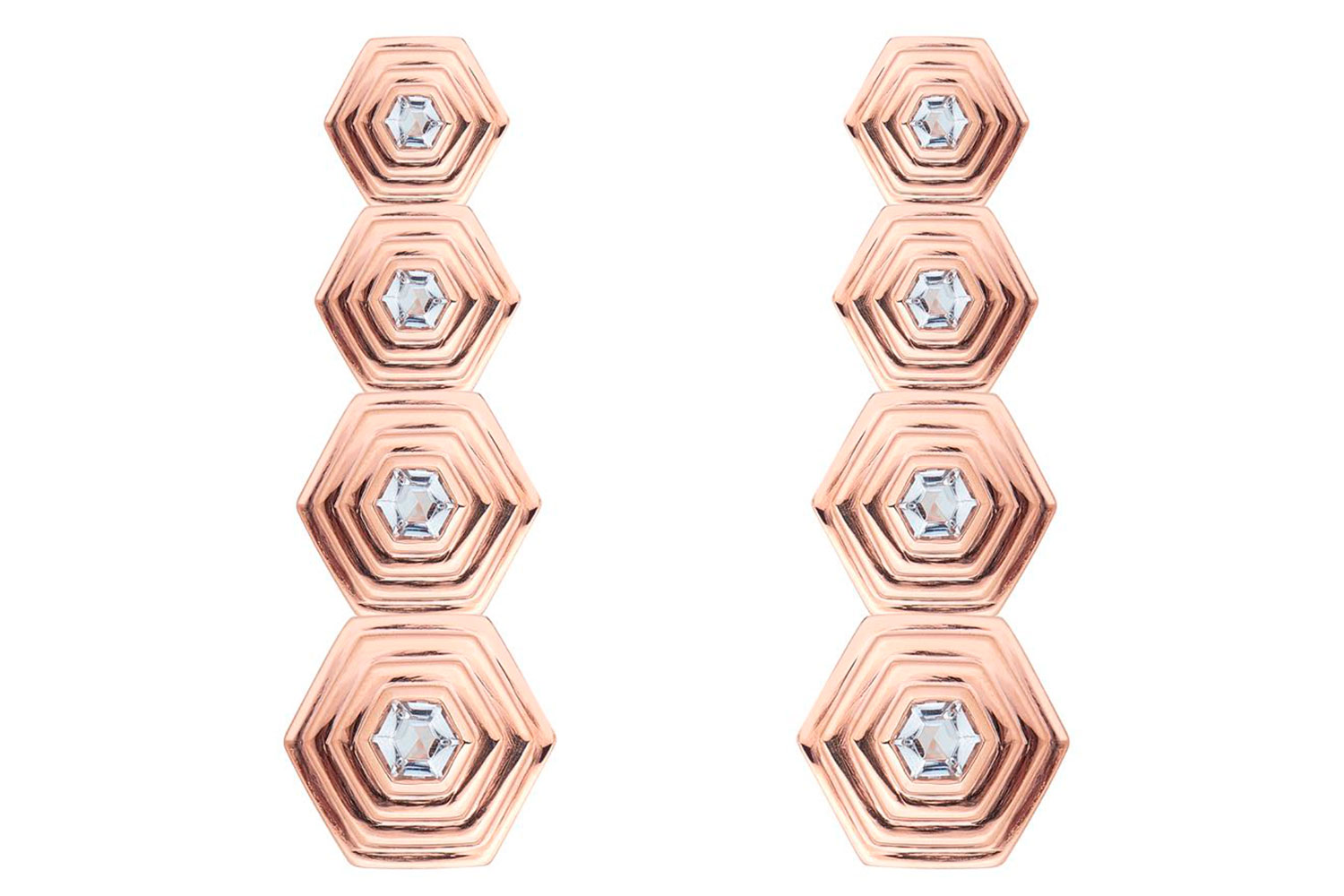 Desembarcam por lá as peças a nova coleção “Saturno”, com joias criadas em formas haxagoanais, mesmo formato de emblemático planeta.