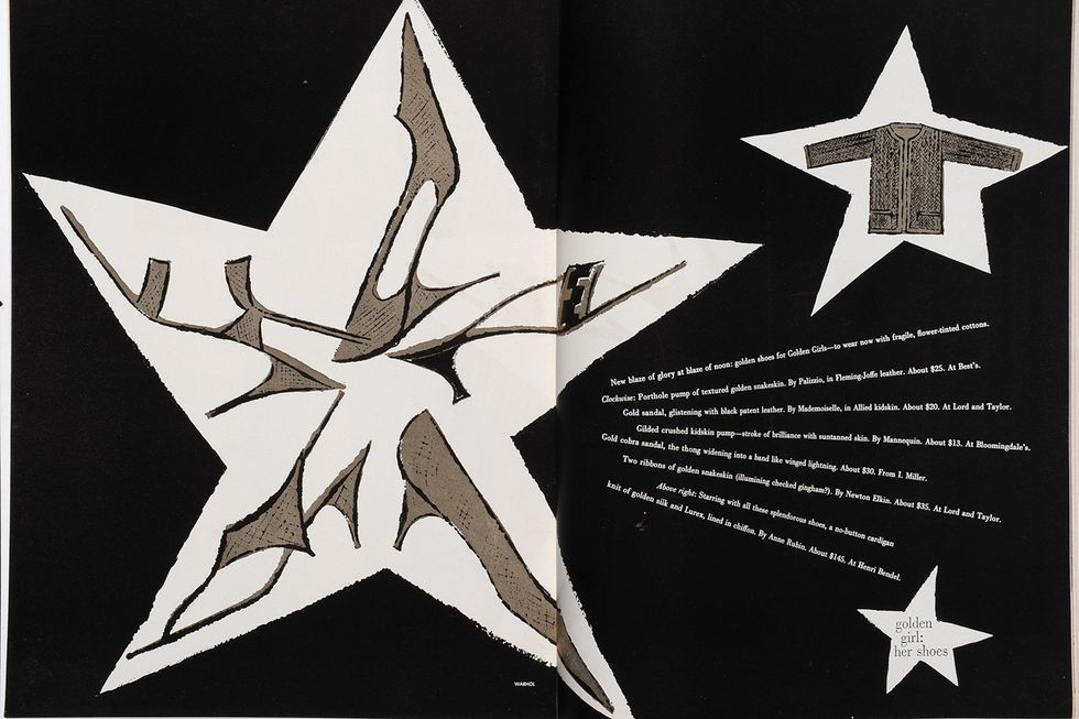 Ilustrador, cineasta e escritor. Com um diploma de artes plásticas, Warhol se formou em 1949 e se mudou para Nova York para se tornar um artista comercial. Sua própria técnica de pintura chamou a atenção da crítica: ele usava linhas de borracha e carimbos para criar seus desenhos. O americano também trabalhou para a Harper’s Bazaar. Pioneiro em inserir o design e o layout moderno em suas páginas, o título era a cara do artista em ascensão, que desenvolvia ilustrações para artigos e reportagens da revista.