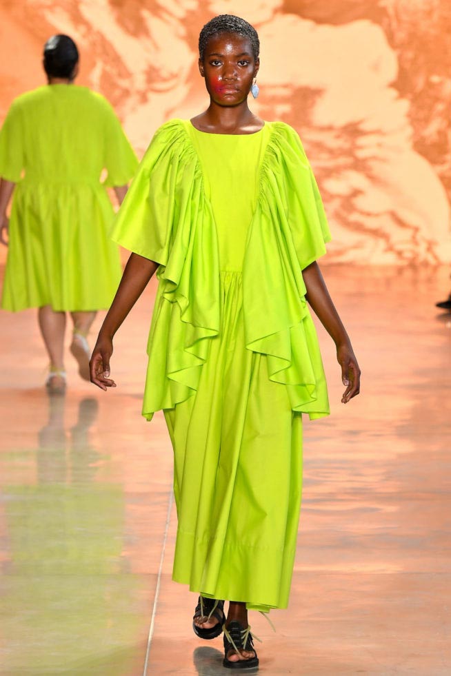 A pesquisa surgiu no desfile em Viena junto com o algodão, seu material-fetiche. Sobre tudo isso veio uma avalanche de beges em três tons de pele em contraste com azul-acinzentado e verde-néon, duo que ela chama de cores extraterrestres. Formada em Artes Cênicas com especialização em figurino, a estilista também fez vários cursos no Parque Lage no período em que morou no Rio de Janeiro. Foi lá que descobriu a obra do artista alemão Josef Albers e o poder dos blocos de cor. “Fiquei pensando em como a cor poderia trazer novos elementos ao vestuário”, recorda.