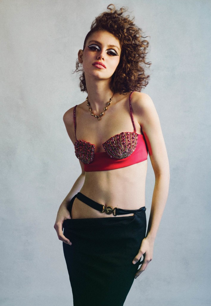 7 / 9Top, saia e colar Versace – Foto: Stéphanie Volpato, com styling de Sarah Cazeneuve, maquiagem de Tiziana Raimondo e cabelo de Tomoko Ohama