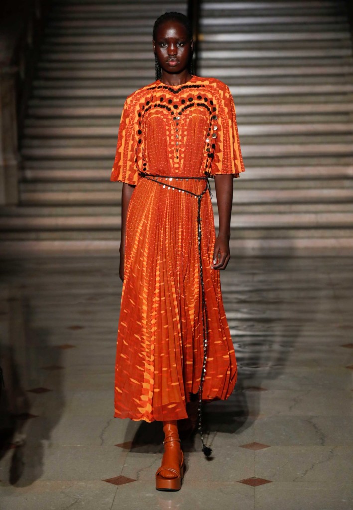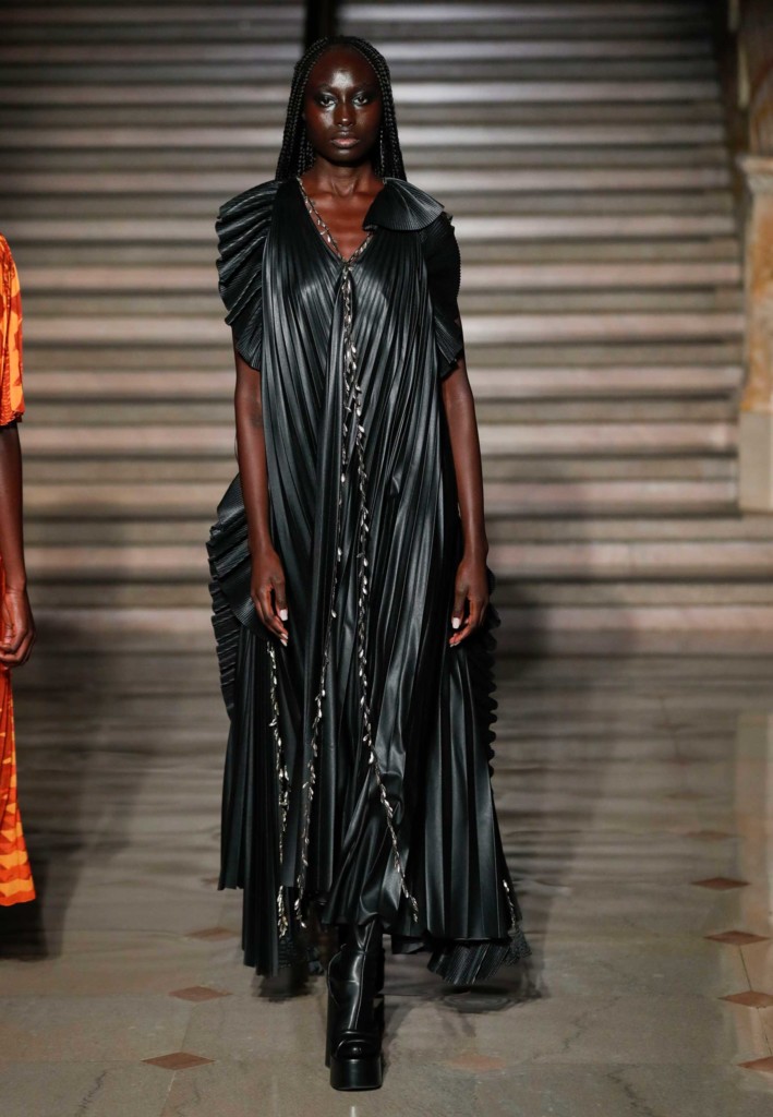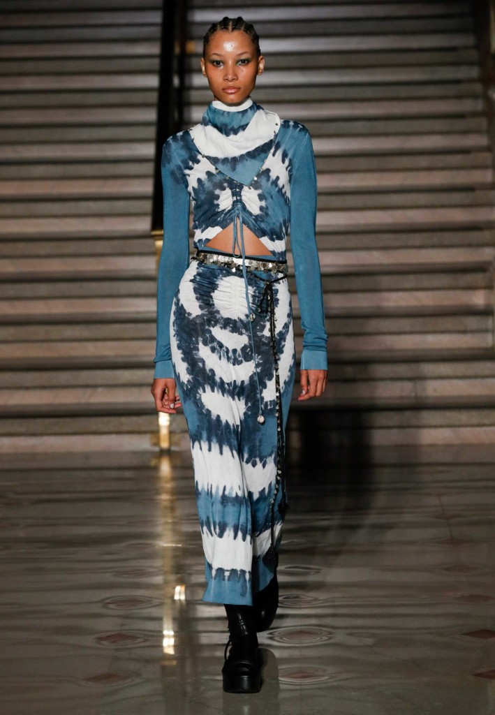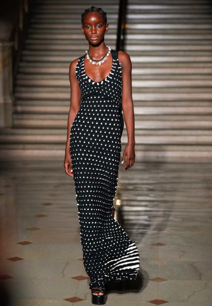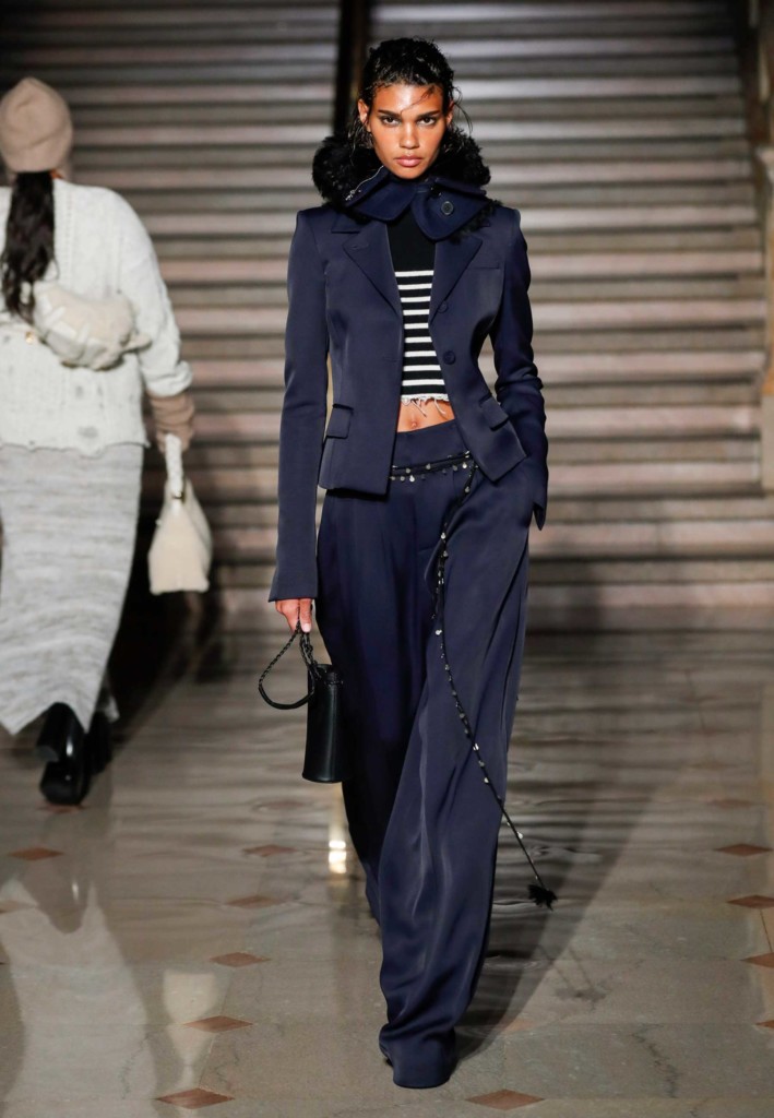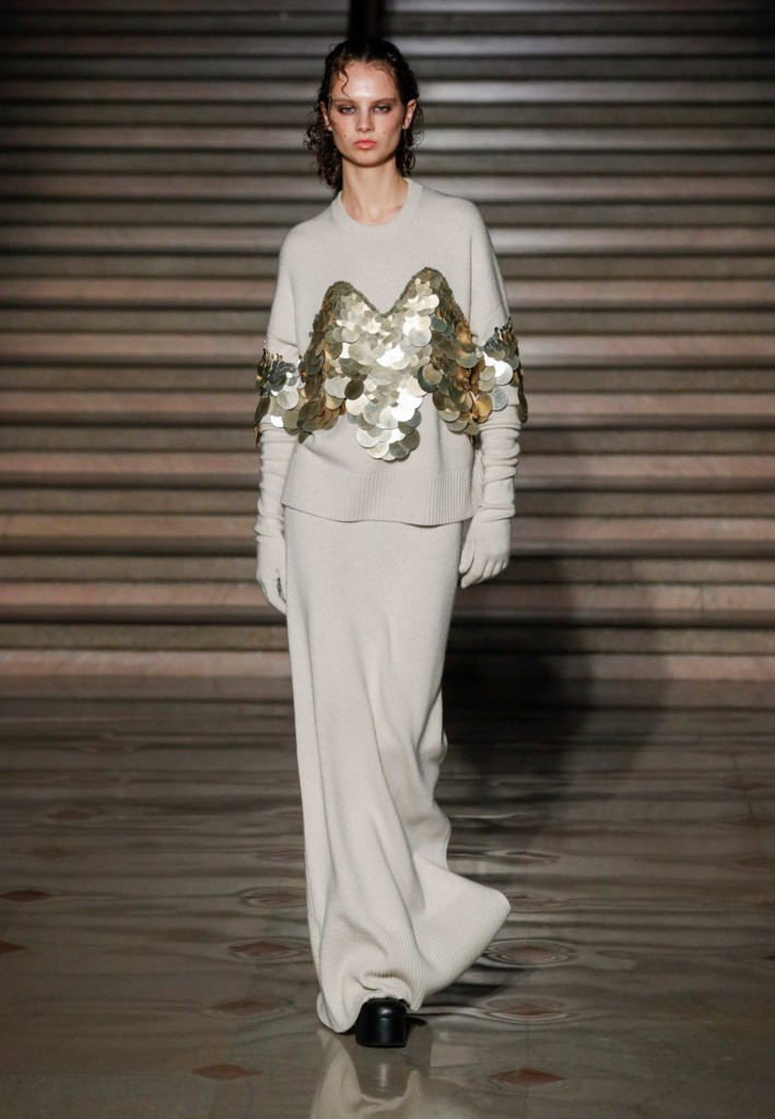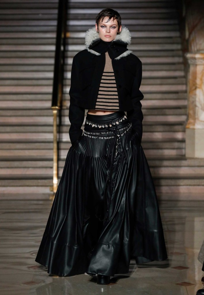 “Tenho abordado a ideia de risco de maneira muito diferente após a pandemia, sinto que tudo o que devo fazer agora deve ser a versão mais extrema e criativa de uma ideia”, afirma Joseph Altuzarra sobre as mudanças que enfrentou nos últimos dois anos. O estilista tinha mitos, exploradores e o oceano em mente ao criar sua coleção de inverno 2022, apresentada na semana de moda de Nova York, e isso se traduziu em camadas fluidas, couro liso e lantejoulas enormes que apareceram na passarela montada do prédio Woolworth, em Manhattan. Como um toque especial, cada convidado ganhou de presente um livro do clássico “Moby Dick”, de Herman Melville.