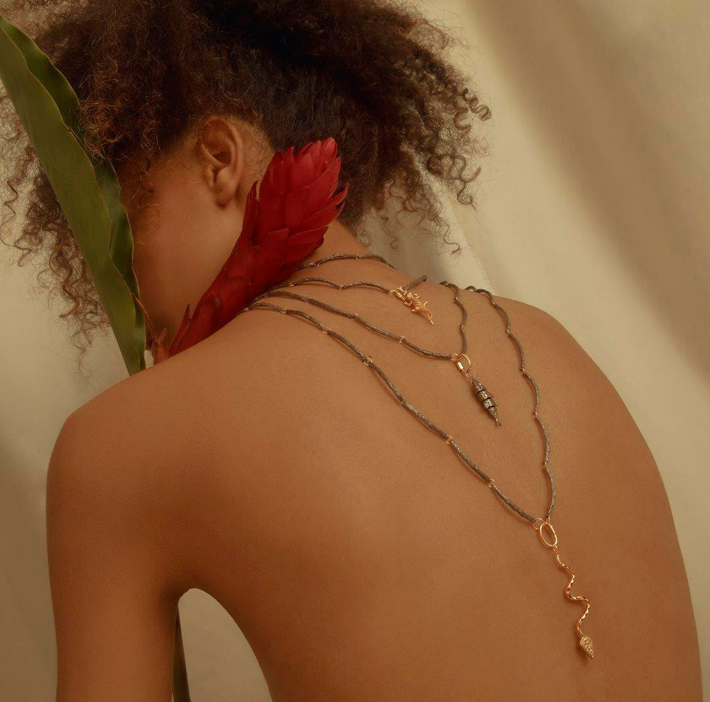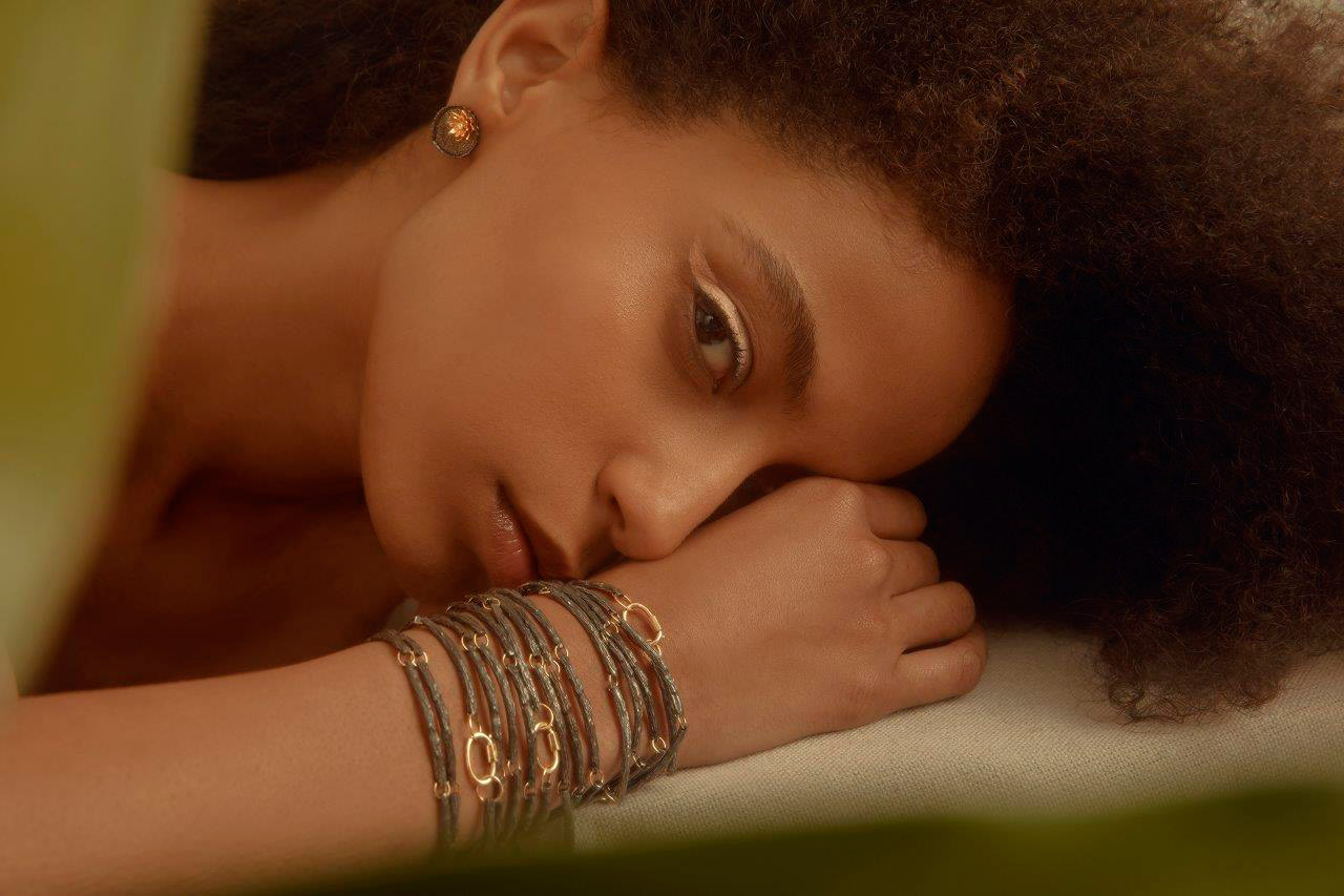 Os brincos, colares, pulseiras e anéis da “Preserve” nascem com formas geométricas que foram combinadas às curvas e contornos orgânicos, produzidas em ouro amarelo de 18K e com detalhes em rubi, esmeralda e ródio negro.