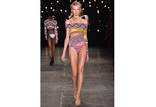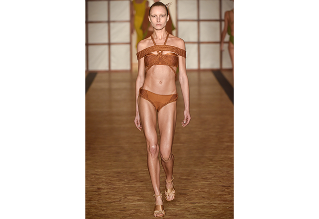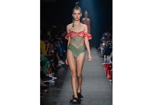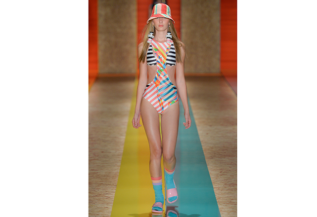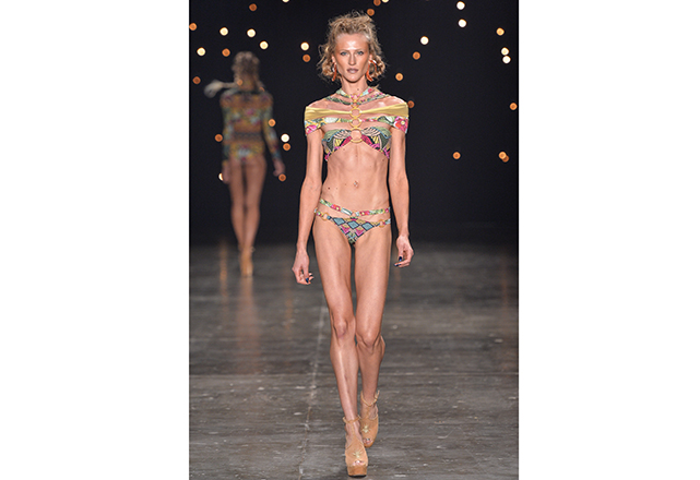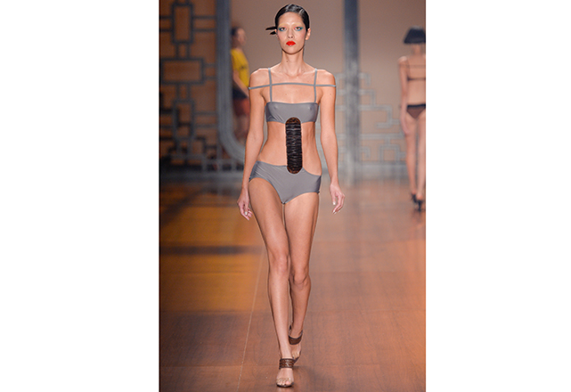 Sendo assim, sem se preocupar com a forma – e caprichando no conteúdo – a ideia que mais passeou pelas passarelas da semana de moda brasileira foi o top com faixas múltiplas (inspirado pelo strappy bra), formando inusitados desenhos no colo. Outra ideia recorrente nesta temporada foi o maiô engana-mamãe (aquele com uma faixa que une o top e a calcinha por uma tira, correndo a barriga) em novas interpretações. Alguns recortes estratégicos nas partes de baixo dos biquínis também fizeram parte dessa aula de geometria. Itens que, com certeza, já estão na lista de desejos das fashionistas que estão desejando a chegada do calor já!