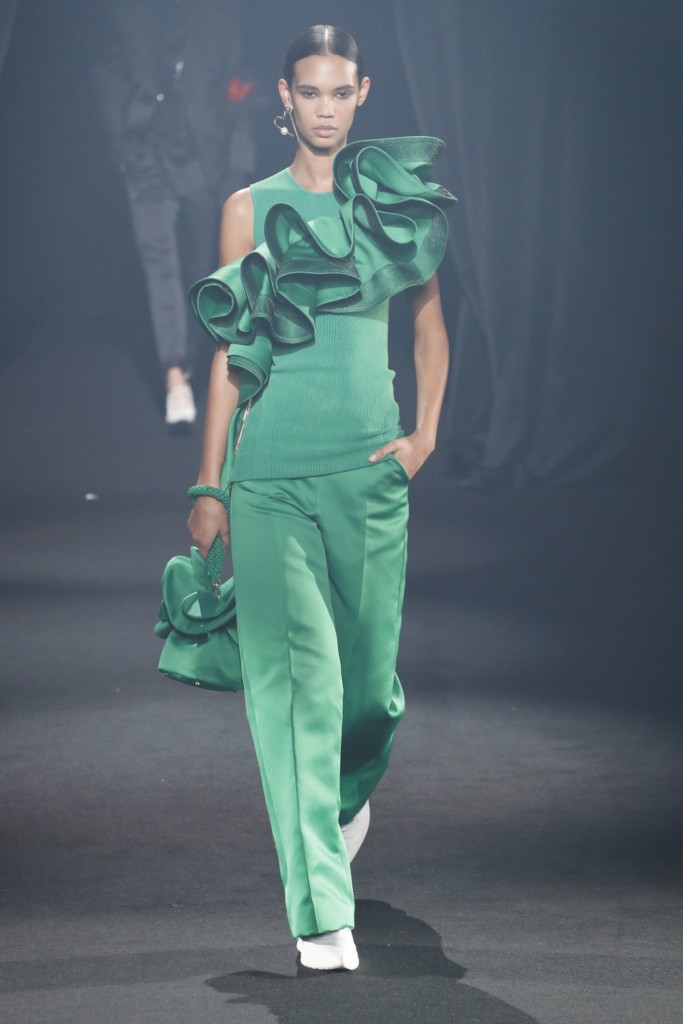 O resultado final foram 45 looks inspirados nas cores vivas e desenhos animados criados pelo estilista, na silhueta sensual que ele eternizou em seu trabalho na @lanvinofficial e, até mesmo, no look assinatura de Elbaz: óculos, terno e gravata borboleta.