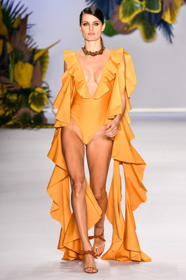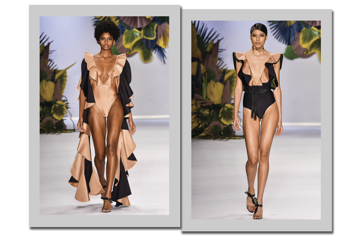 Babados ao longo dos decotes exuberantes dos maiôs da Água de Coco para o verão 2019 – Foto: Divulgação/Agência Fotosite