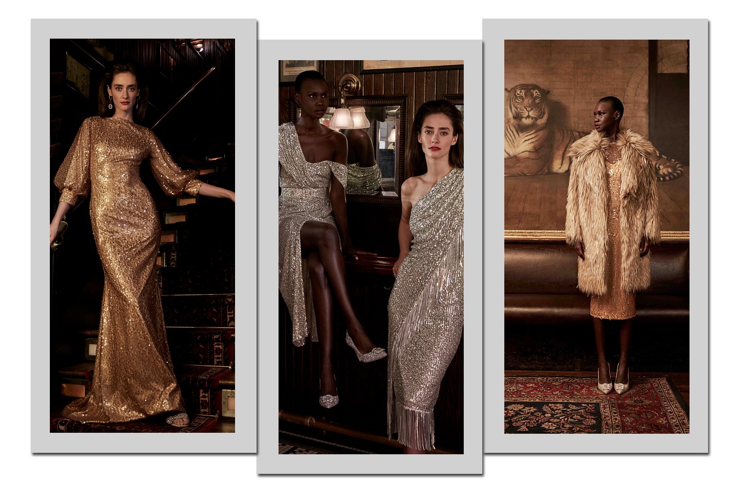 Não é só de vestidos que visuais elegantes são feitos e a marca prova isso com macacões, ternos e modelos brilhantes.