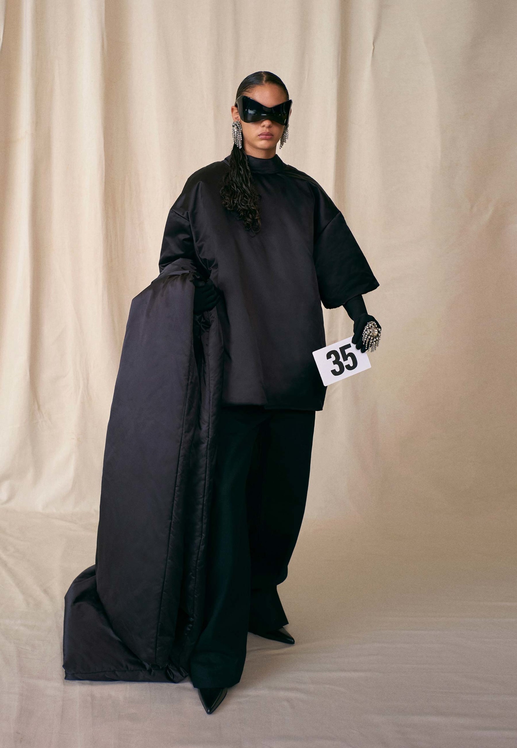 As golas estruturais de Cristóbal, conhecido como “o arquiteto da moda”, estão na coleção, assim como seus grandes sucessos revisitados, como o vestido-saco e o vestido-camisa. Entre os acessórios, destaque para a volta do chapéu arredondado criado por Balenciaga no final da década de 1950.