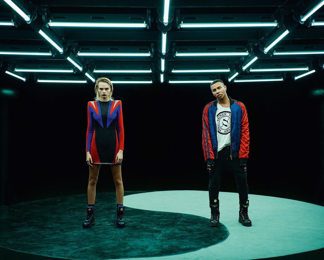 Sempre presente em meios badalados e com uma gama de amigos famosos, Olivier Rousteing se uniu a Cara Delevingne para criar a primeira colaboração entre a Balmain e a Puma. Com 35 peças, que estarão à venda a partir de 21 de novembro em boutiques selecionadas e online, a parceria se desdobrará em duas coleções cápsula.