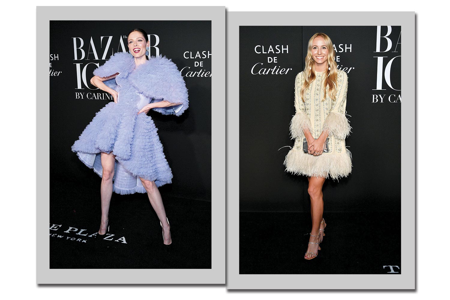 Que tal um pouco de volume? Coco Rocha usa Christian Siriano, enquanto Harley-Viera Newton vai de plumas da italiana Valentino.