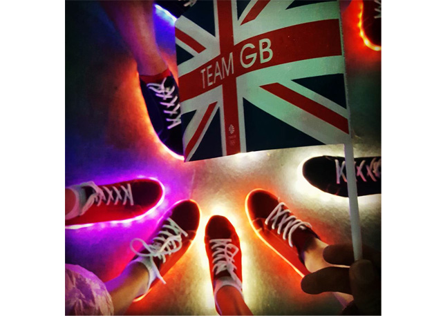 De diferentes nacionalidades, os atletas esbanjavam sorrisos para todos os lados. Na parte de trás da jaqueta da seleção da Grã-Bretanha, uma mensagem muito fofa aos brasileiros! Junto ao brasão de leão, estava escrito “obrigado” (em português). Até então, eles já haviam conquistado o público. Mas todos fomos à loucura quando vimos que seus tênis tinham luzinhas! Sim, iguais aos de criança!
