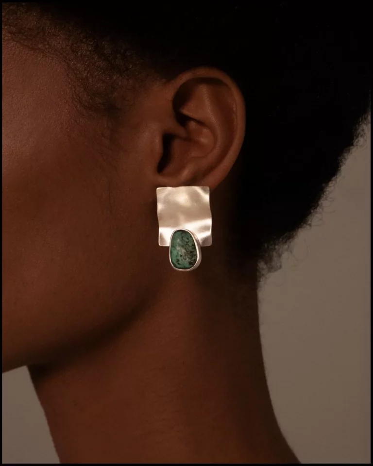 “Memórias da Terra, Relíquias do Mar” da M. Pondé explora o diálogo entre paisagens terrestres e marítimas a partir dos vestígios deixados pela ação do tempo — fragmentos, sedimentos e relíquias revelados pela vazante. A paleta combina azuis, verdes, tons minerais e nuances que evocam superfícies vulcânicas e a intensidade das turquesas, pedra milenar que simboliza equilíbrio entre céu, água, profundidade e superfície. Inspirada pelos padrões de erosão e deposição que marcam o Atlântico e o Pacífico, a coleção convida o observador a reconhecer a materialidade do mundo, seus processos contínuos de transformação e as memórias naturais e culturais preservadas nessas camadas do tempo.