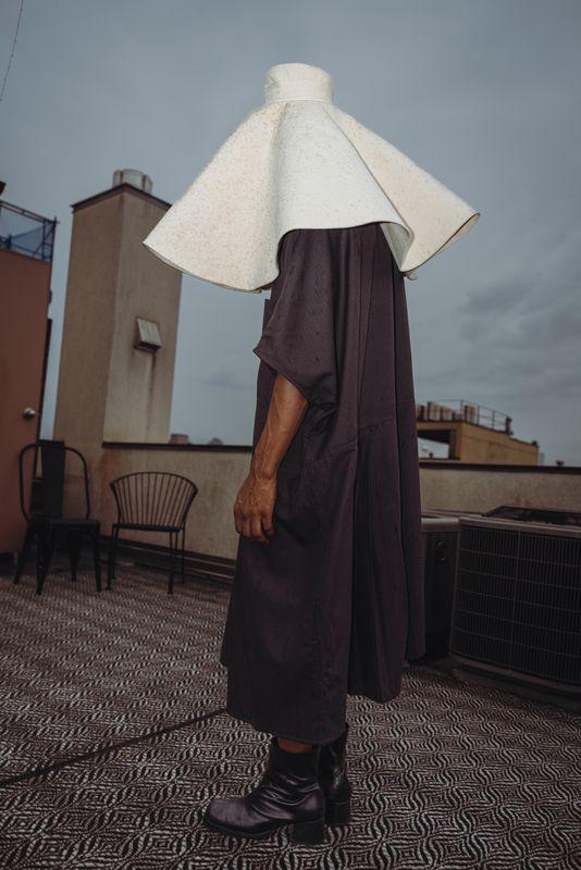 As peças exploram a alfaiataria contemporânea, unindo cortes inusitados, caimentos refinados e sobreposições em tecidos texturizados, transitando entre o clássico e o experimental.