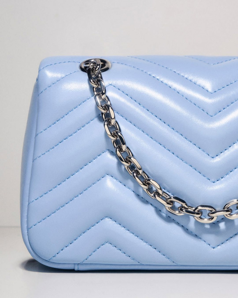 Em 2025, a marca apresenta a nova versão desse clássico: o modelo surge em couro maleável, com um discreto bolso traseiro nas opções média e grande. A alça de corrente ajustável, junto aos metais frontais entrelaçados, agora aparece com acabamento polido, disponível em dourado ou prateado. Um ícone atemporal, atualizado com ainda mais elegância. Veja na galeria os modelos:
