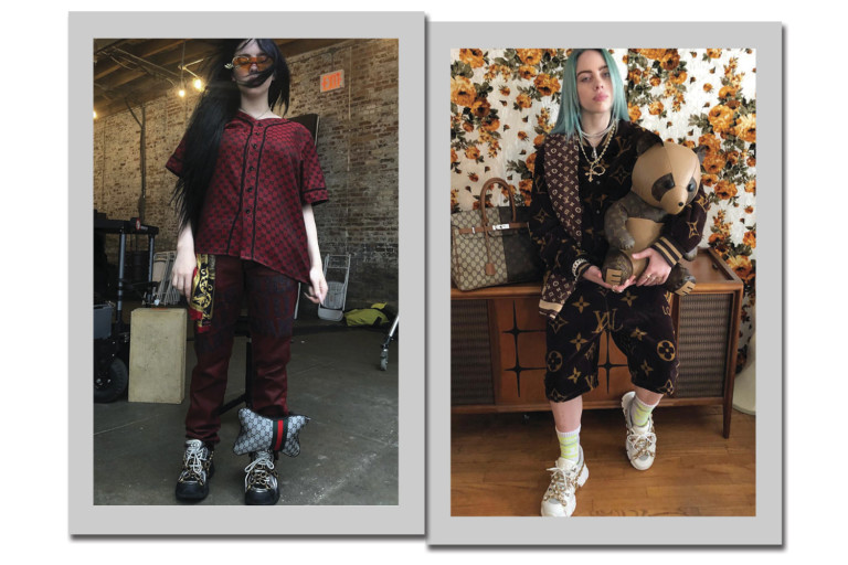 No entanto, a artista não economiza no luxo e é uma das principais adeptas da logomania – uma tendência que só cresce na cultura street style. Na noite em que se tornou a primeira e mais jovem mulher a vencer as quatro principais categorias do Grammy – incluindo Melhor Artista Revelação , ela optou por um terno Gucci inspirado em pijamas com logotipos metálicos verde limão, que apareceram até mesmo em suas unhas stiletto desenhadas pela artista Emi Kudo. Além da grife italiana, outras marcas de luxo como Burberry, Louis Vuitton, Chanel e MCM já se interessaram em vestir a cantora.