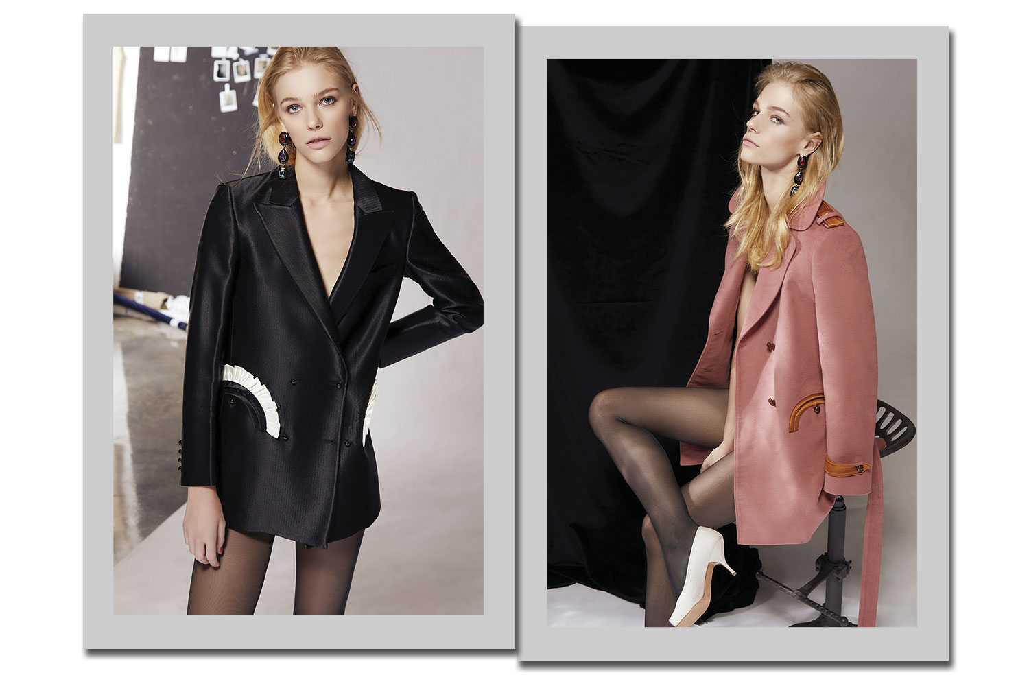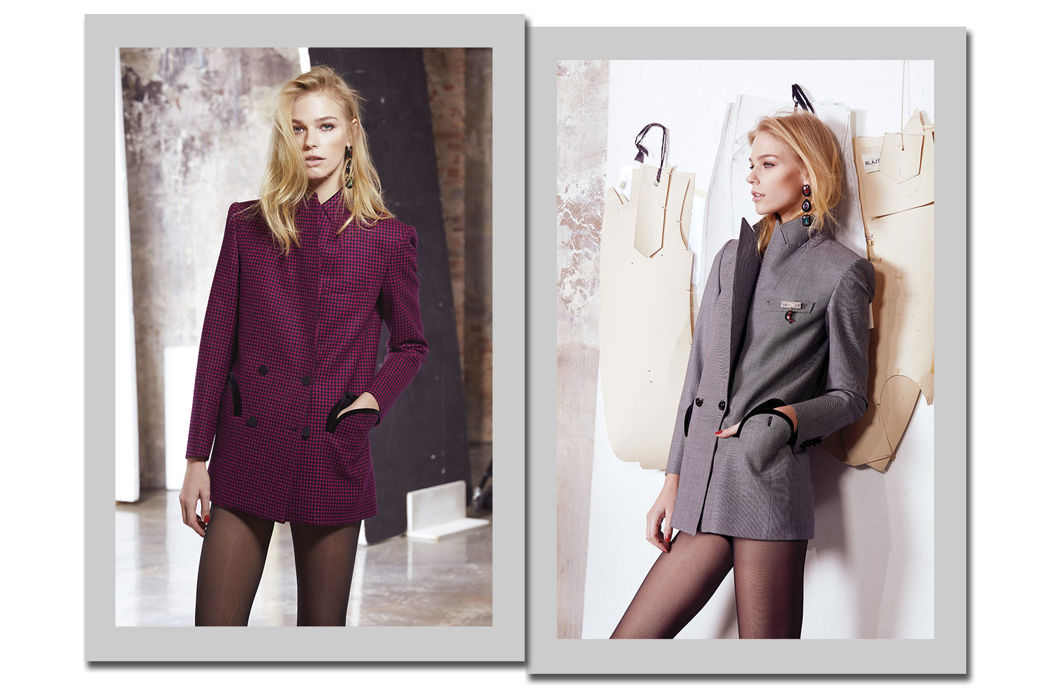 Com coleções disponíveis nos principais e-commerces do mundo, entre eles Moda Operandi, Barneys e My Theresa, as designers apostam em onze modelos fixos, com combinações inusitadas, como o contraste de pink no corpo e na gola, tecidos com perfume aristocrático – incluindo veludo e jacquard -, abotoamentos duplos em alguns casos e comprimento alongado para a versão batizada de “Blazer Dress”.