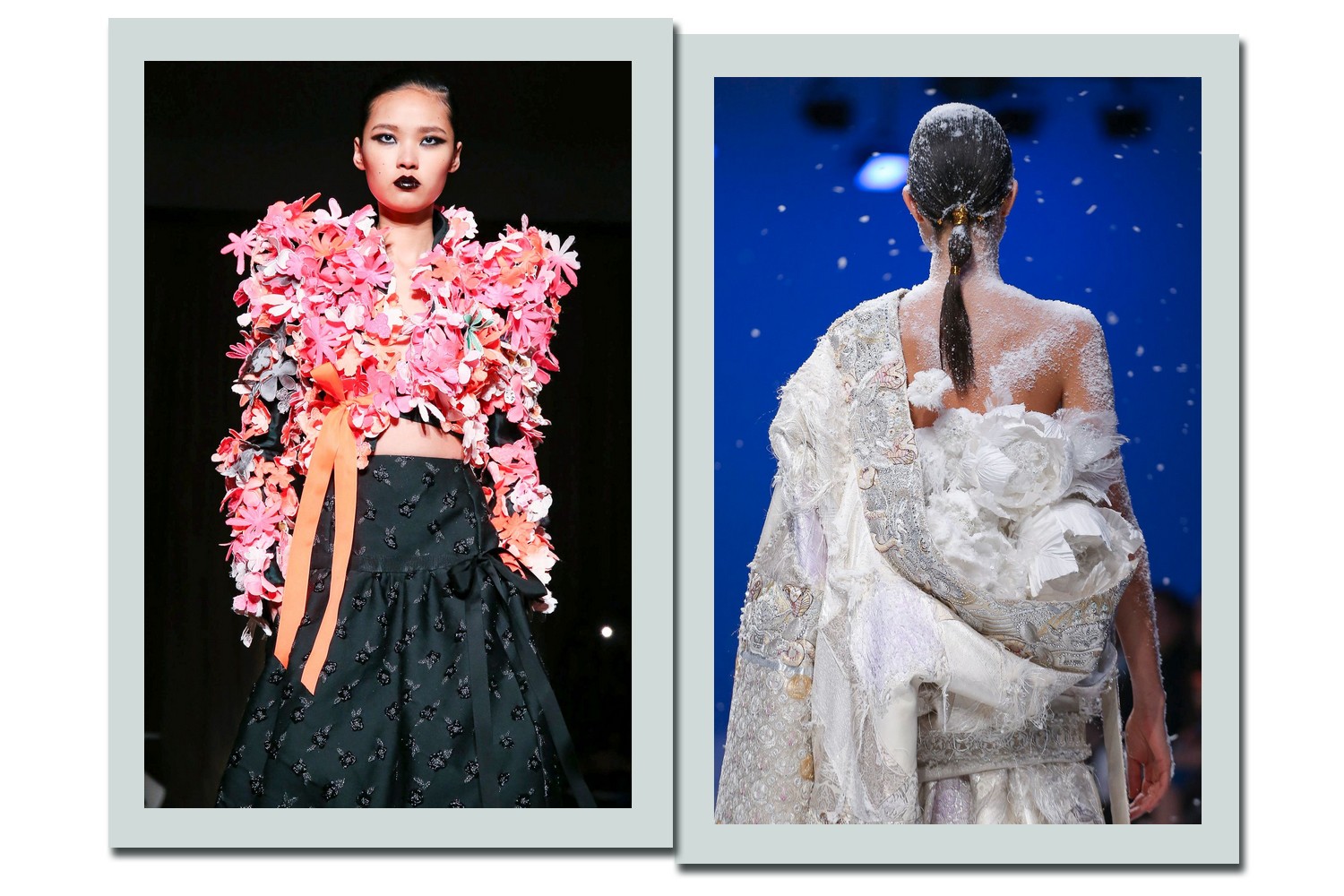 Com a modernização dos meios de produção de roupas, as estampas planas ficaram no passado. Aplicações em 3D e recortes a laser fazem com que peças ganhem ainda mais vida e diferentes dimensões. Enquanto RVDK apostou em pequenas flores, Guo Pei optou por detalhes maiores e mais volumosos.