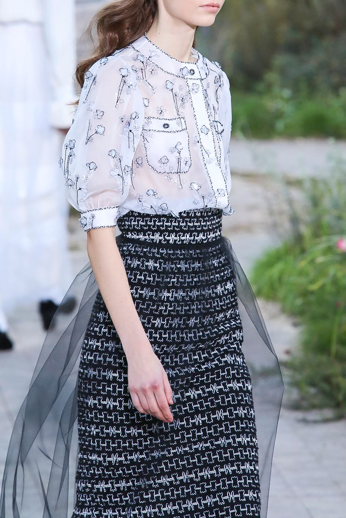 Apesar de haverem inúmeras maneiras de investir no floral e sair do comum, isso não significa que os clássicos perdem sua força. A Chanel, por exemplo, não abriu mão do bordado de pequenas e delicadas flores, feito em linha. A transparência e o destaque do bolso ajudam a deixar a peça ainda mais interessante.