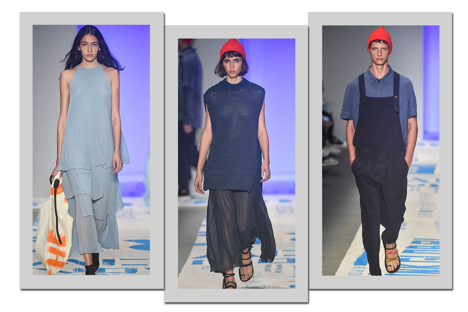 A Osklen abusou do azul. Com uma pegada dos figurinos dos filmes de Wes Anderson, Oskar Metsavaht olhou para os oceanos para falar sobre sustentabilidade. Transparência, camadas e o plissado enriqueceram os looks da marca.