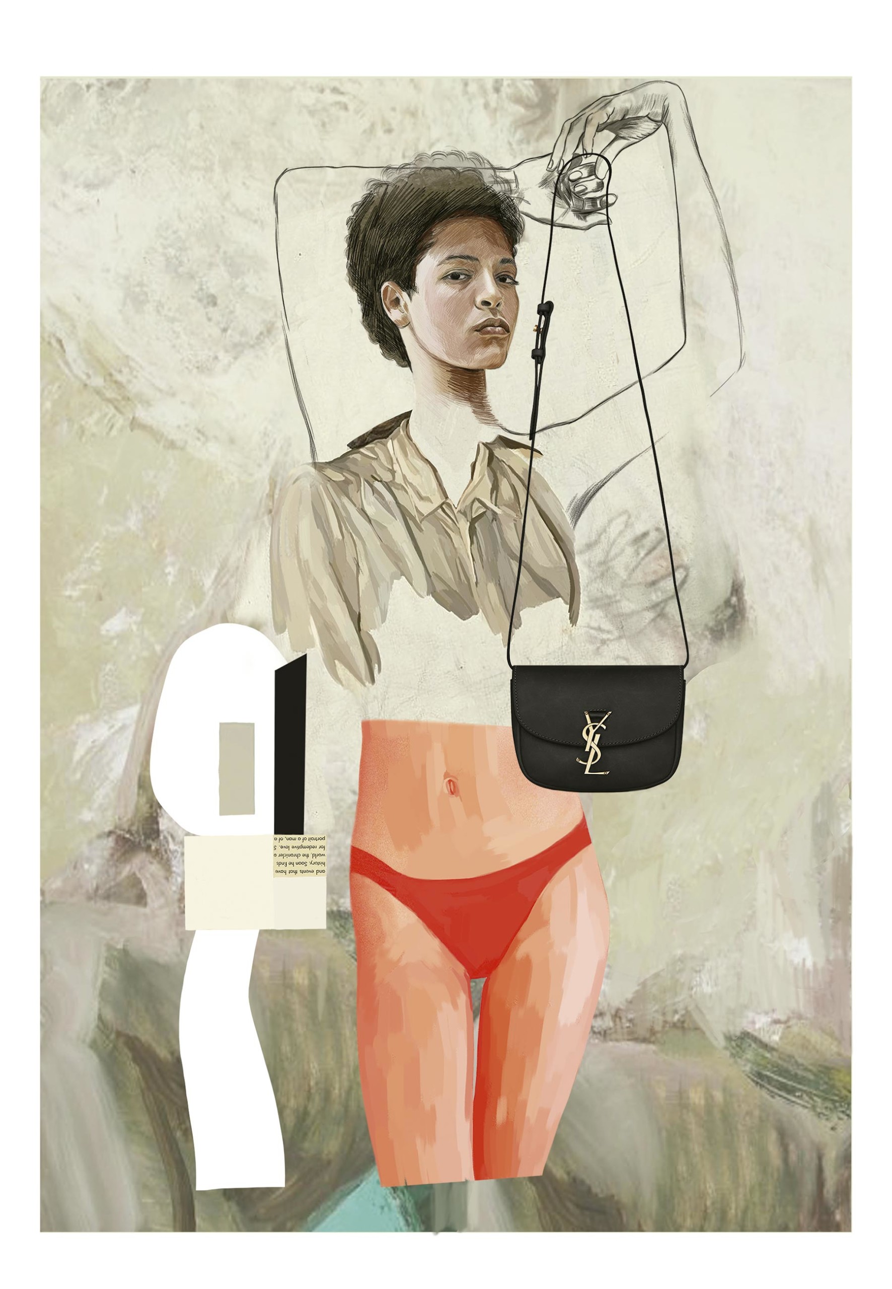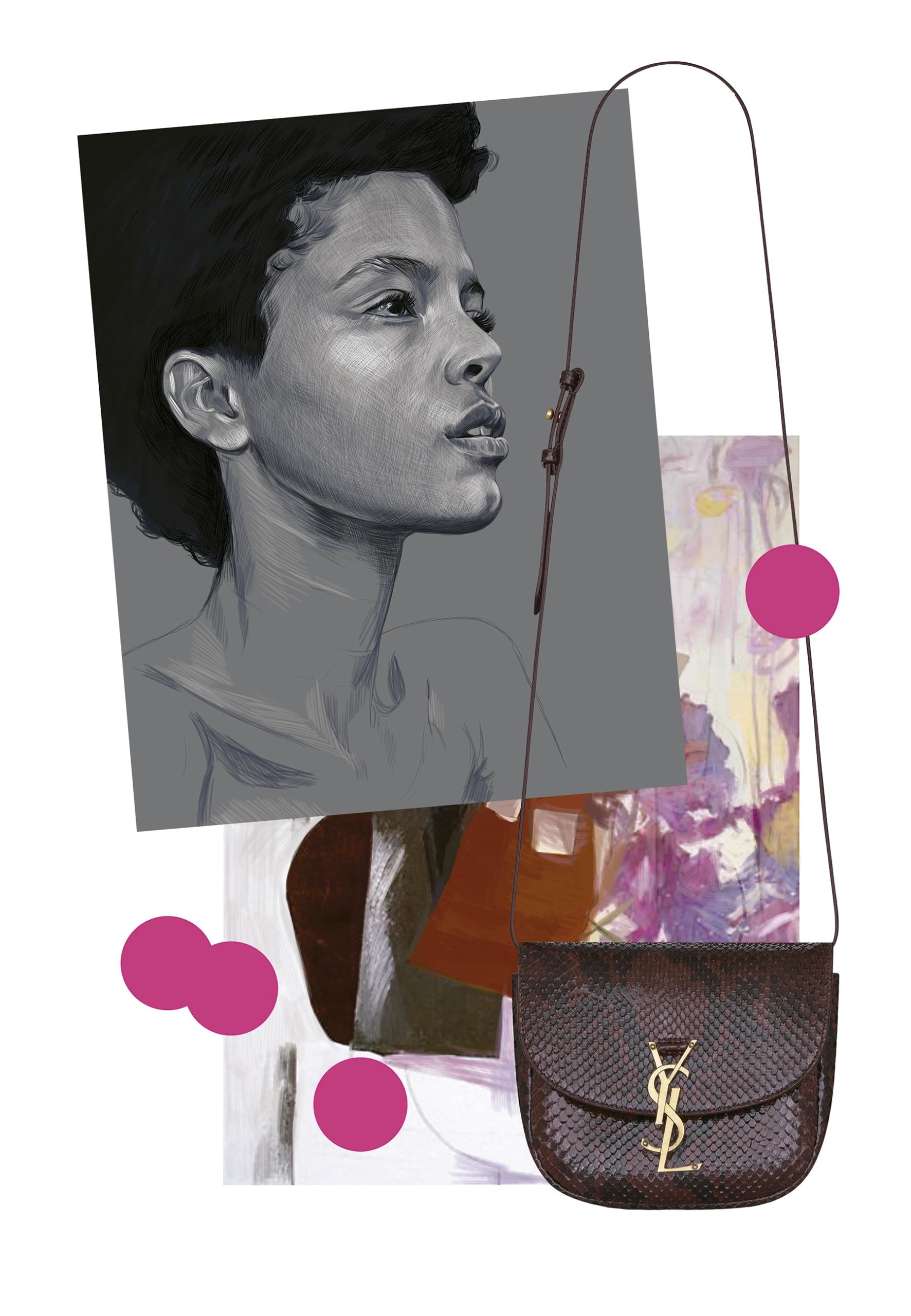 A nova bolsa de Anthony Vaccarello para a Saint Laurent ganhou o nome da modelo Kaia Gerber, já que foi ela quem desfilou com a novidade na passarela do verão 2020. Na ilustração de Nawel Maj, a modelo brasileira Laiza Moura aparece com a it-bag, que acaba de desembarcar no Brasil.