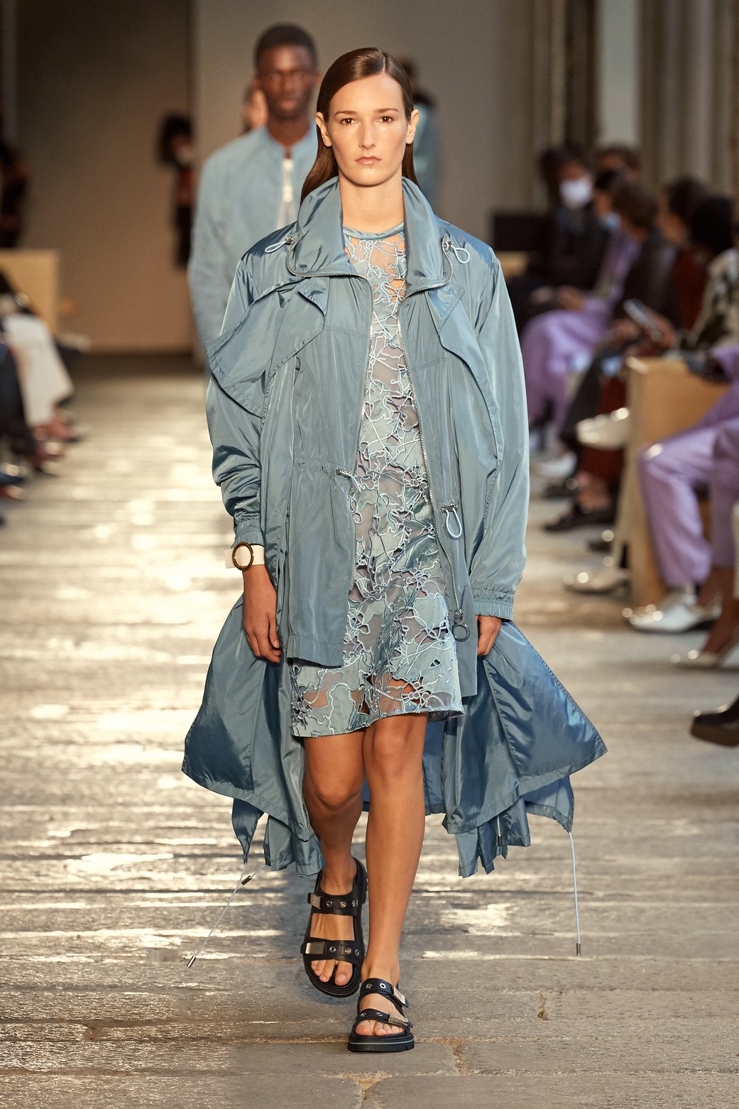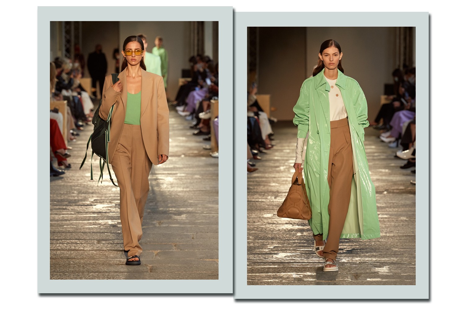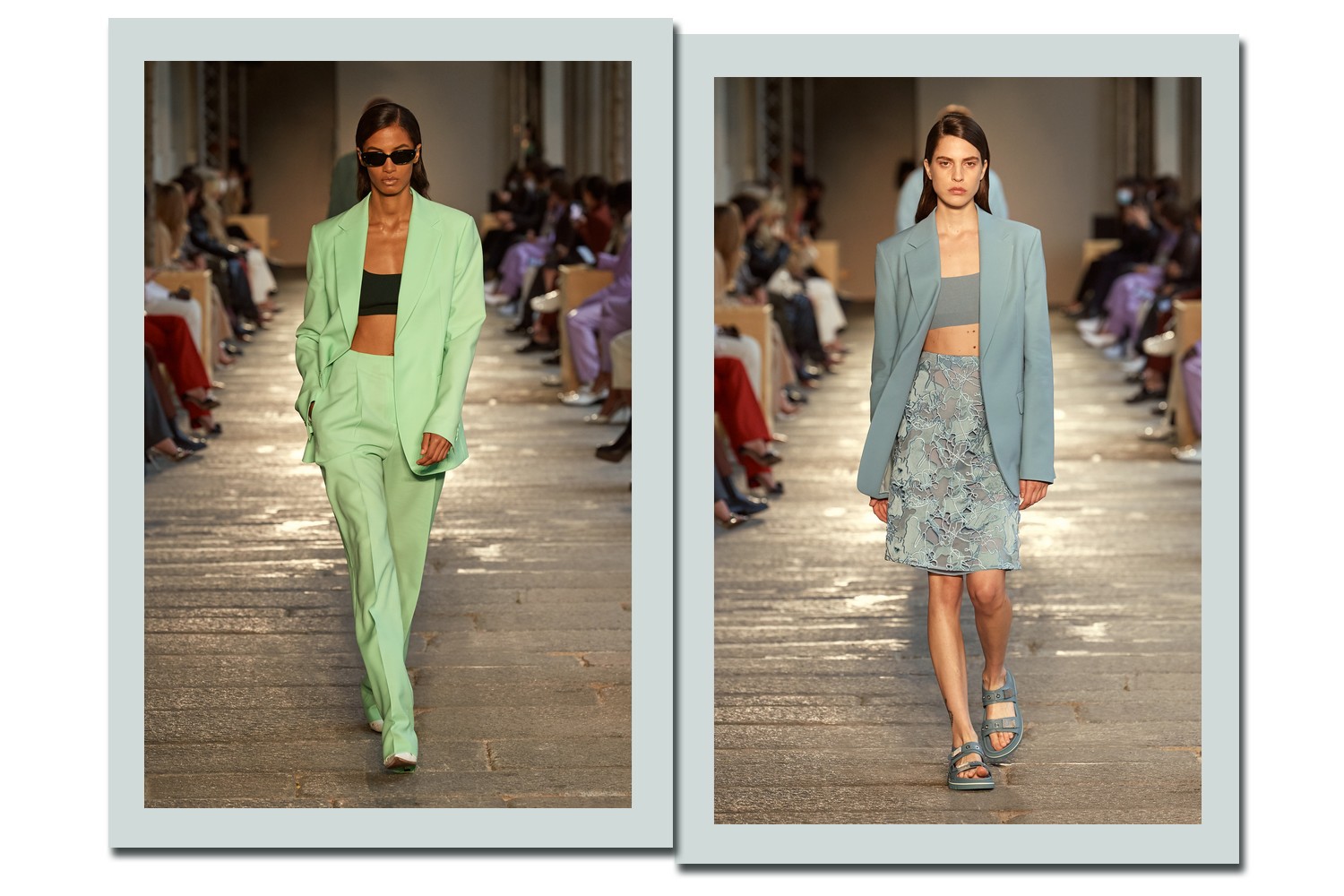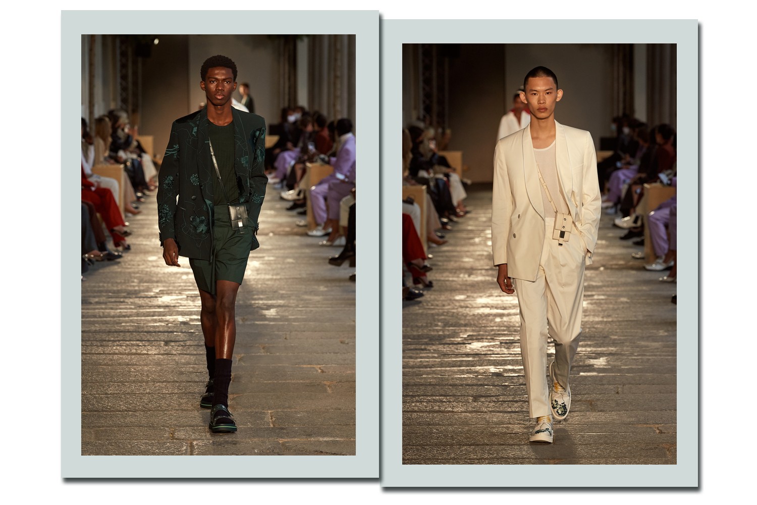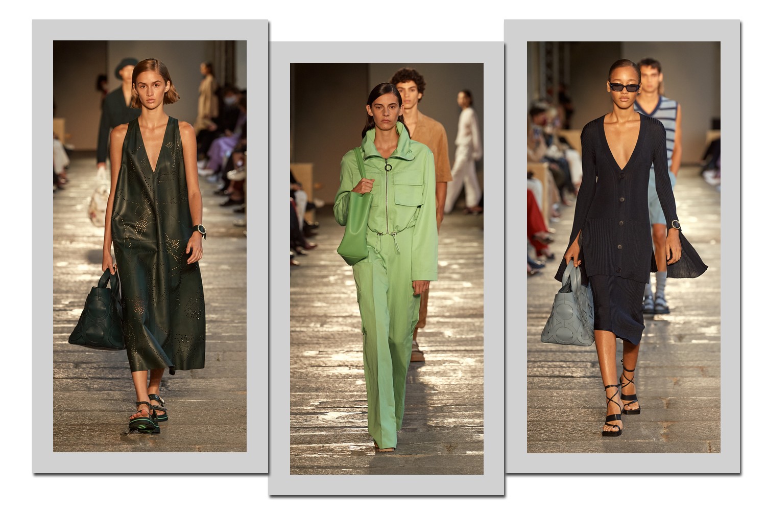 Boss foi uma das marca que se rendeu à popularidade do TikTok, escolhendo a plataforma como um dos canais para apresentar o seu verão 2021. Para o desfile, a marca escolheu uma locação com um significado especial: Palazzo del Senato, onde há 20 anos ocorreu o primeiro desfile da Boss Womenswear. Colunas e árvores, que serão doadas para a cidade de Milão, uniram arquitetura e natureza em um mesmo cenário.