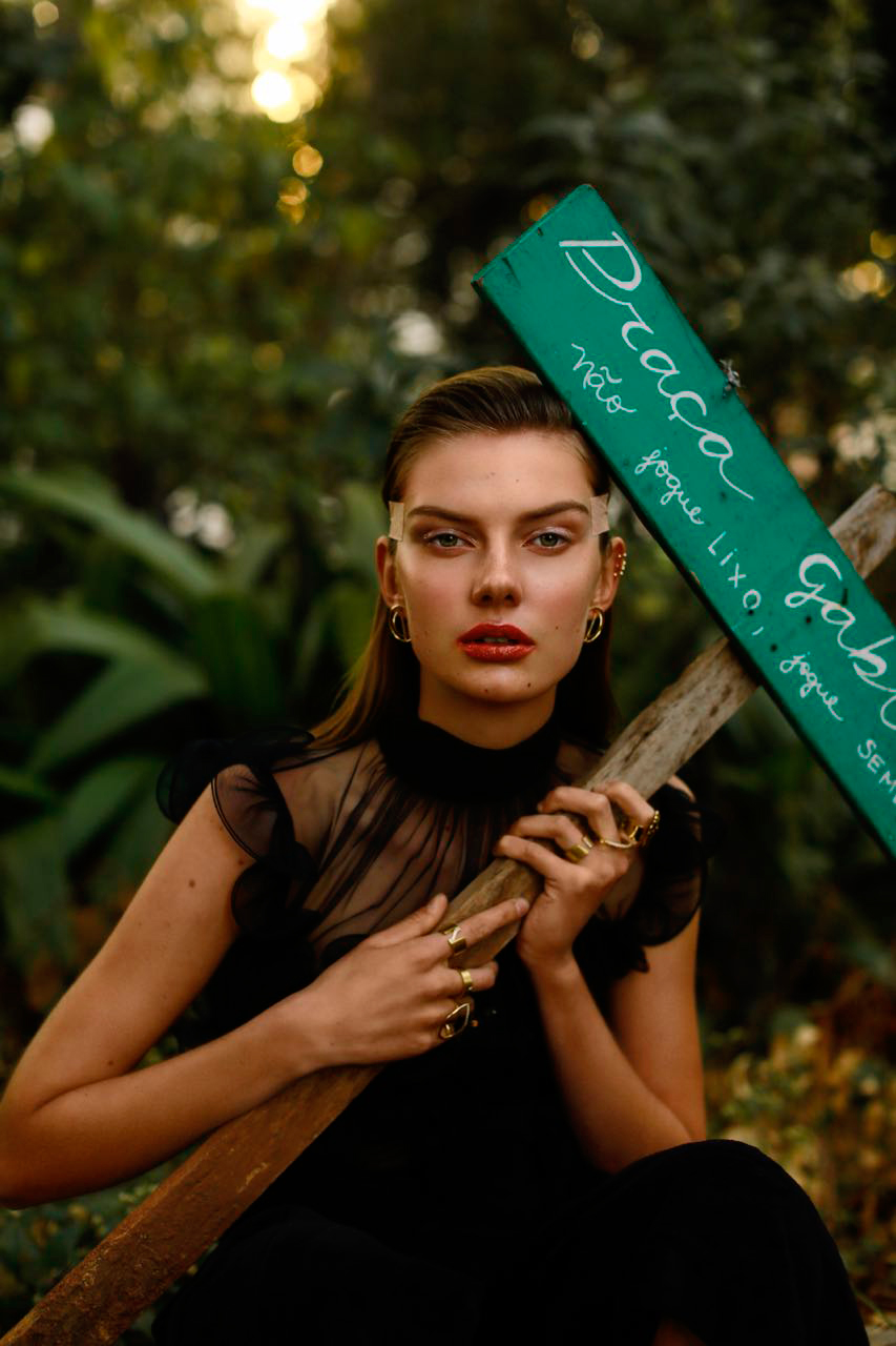 Brinco e aneis H.Stern, piercing A Figurinista e blusa Reinaldo Lourenço – Foto: Lufre, com styling de Alexandre Dornellas e beleza de Henrique Azevedo