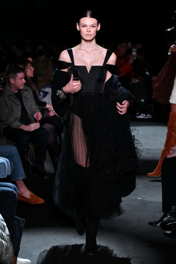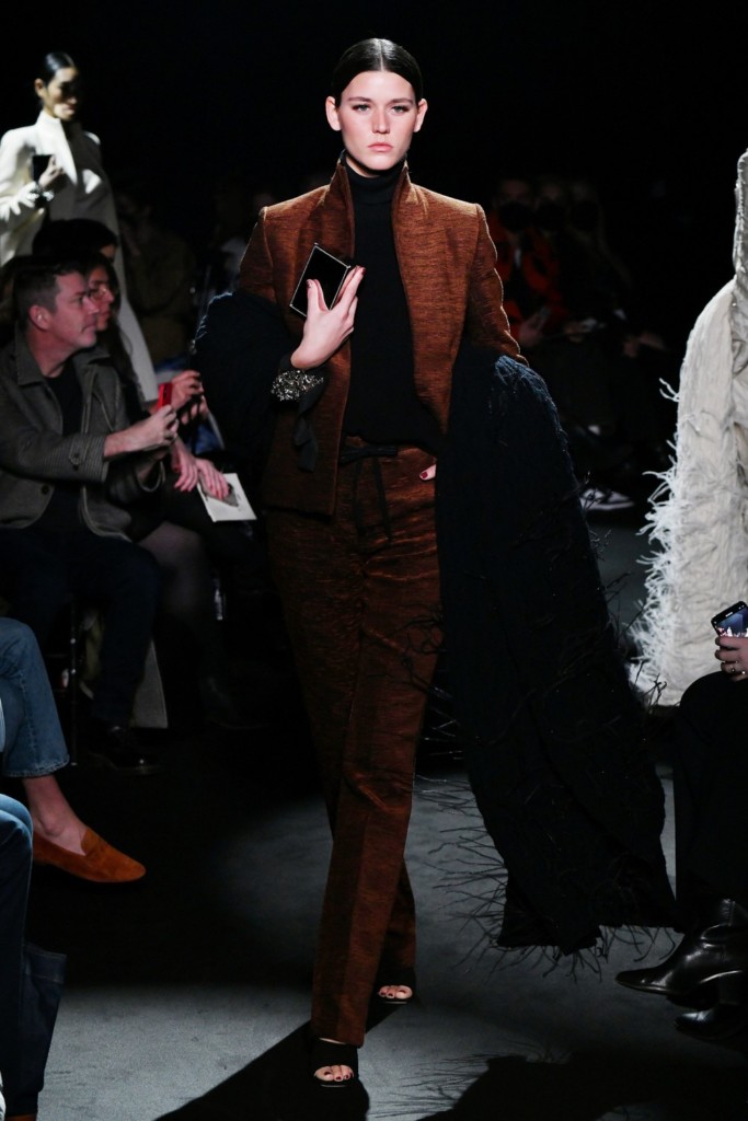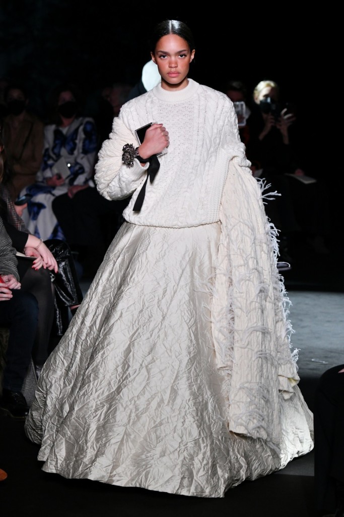 Para o inverno 2022 da sua marca homônima, Brandon Maxwell homenageou sua avó, Louise, a quem credita sua paixão pela moda. “A coleção é um exercício de confronto, aceitação, reverência e legado”, afirma o designer em comunicado sobre a apresentação, que foi iniciada por imagens de sua trajetória profissional e sua infância.