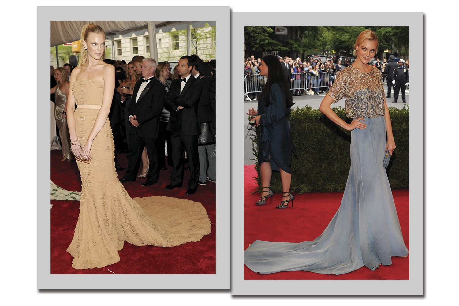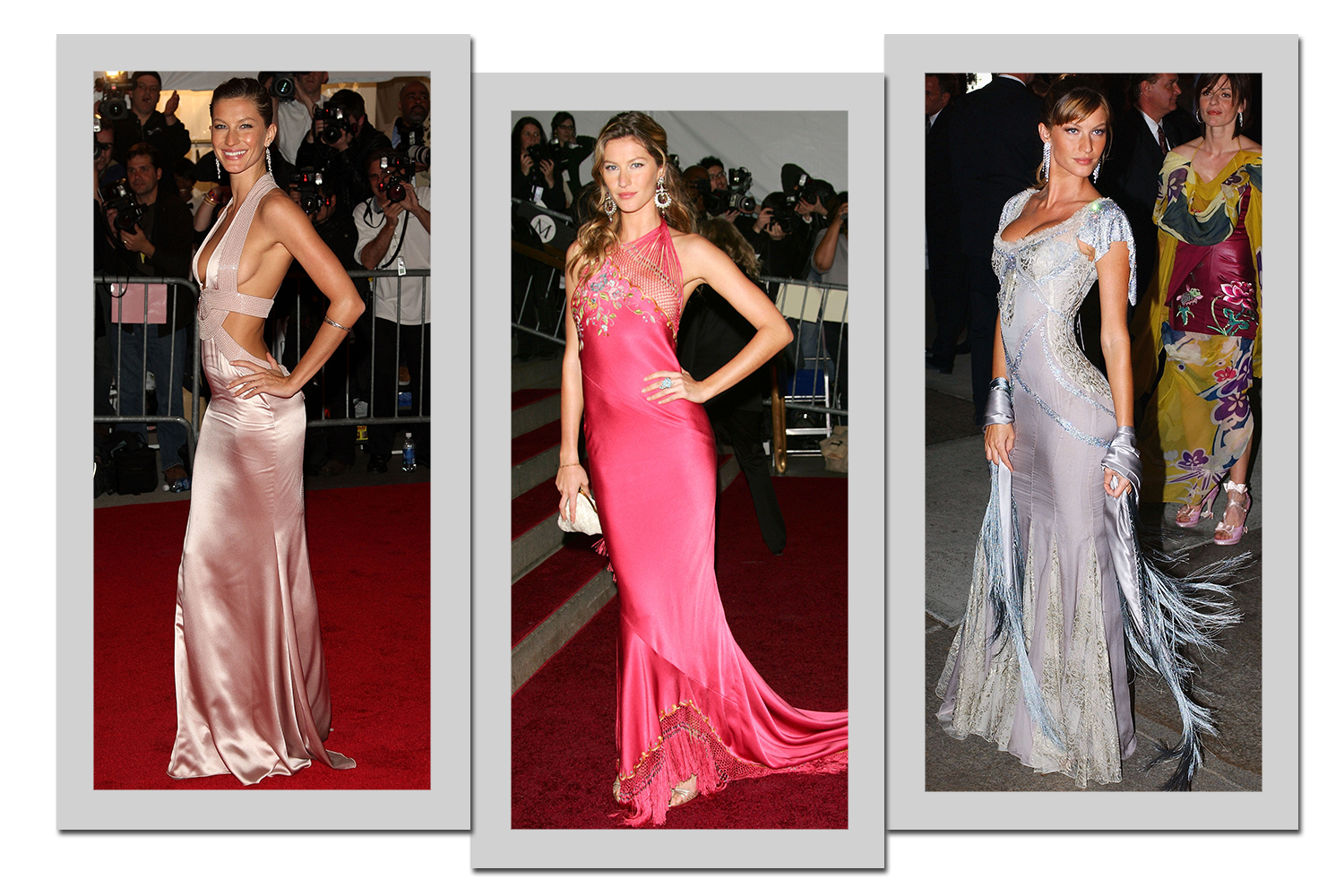 Da esquerda para a direita, vestidos Versace (2011), Dior (2006) e Dolce & Gabbana (2003) – Fotos: Getty Images
