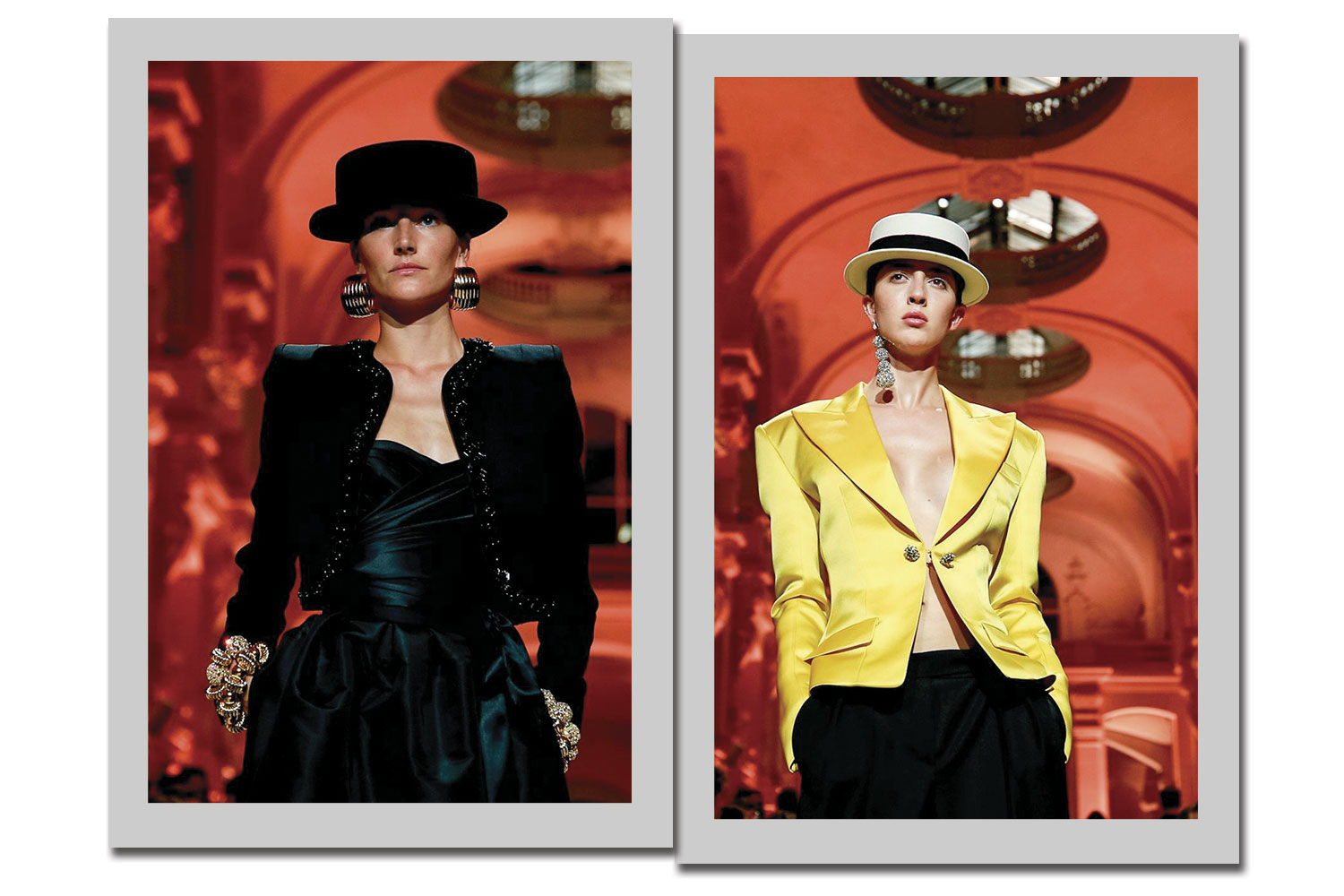 Uma dose de humor também se fez presente. Na Guo Pei, que fez uma reprodução da torre Eiffel; e em Gaultier, que investiu em brincos com longos fios de cabelo e também em formato de cigarro.