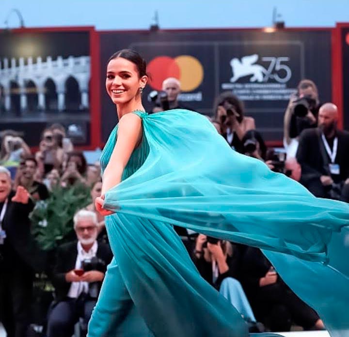 Bruna Marquezine rouba a cena com vestido esvoaçante em Veneza