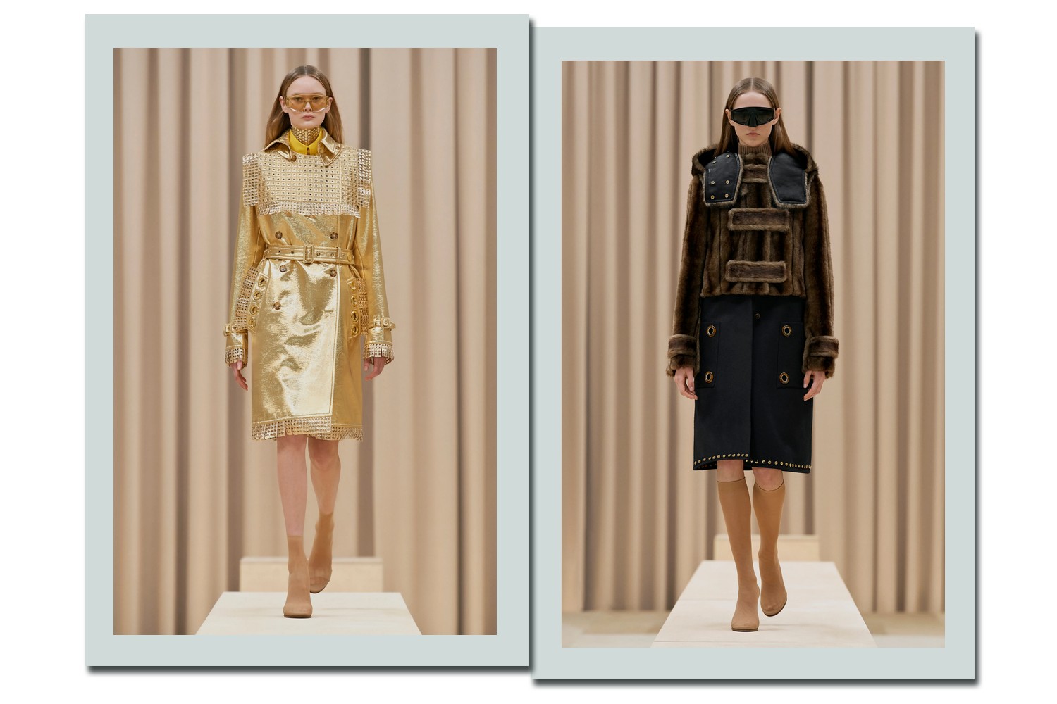 Ombros marcados e faixas são alguns dos detalhes usados em casacos e jaquetas que remetem a armaduras.