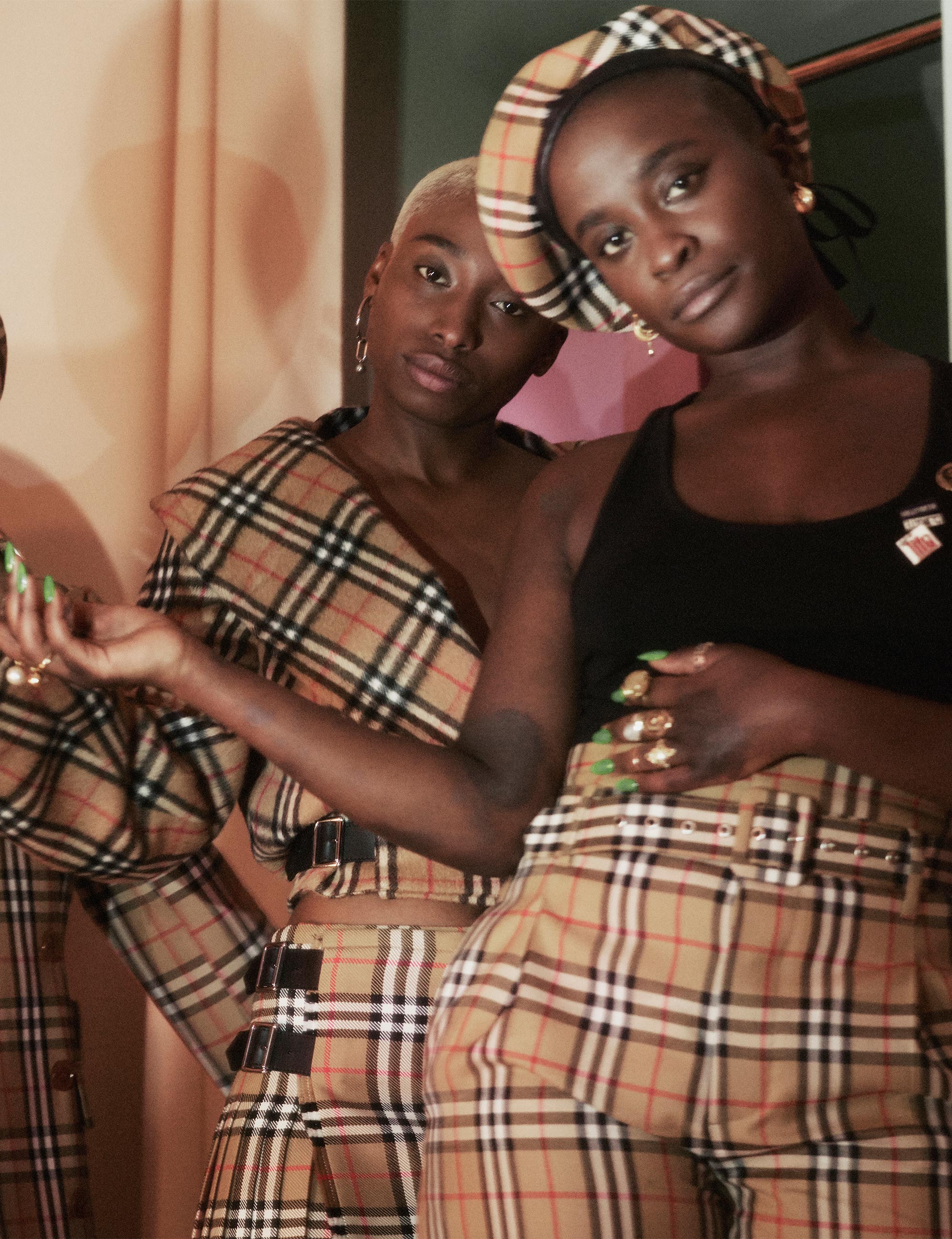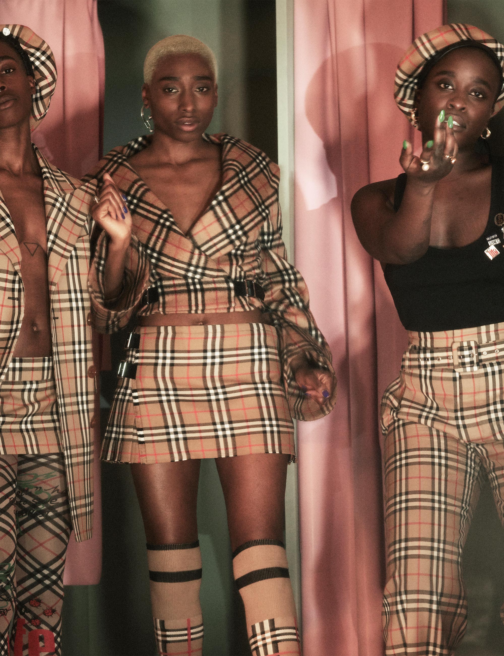A ideia da coleção, que chega em edição limitada às lojas e é a primeira de Riccardo Tisci como estilista da Burberry, é ser unissex e criar uma “união entre o punk e o tradicional”. Por isso, várias peças icônicas de Vivienne, como a boina, os kilts e os sapatos tipo plataforma, ganham releituras.