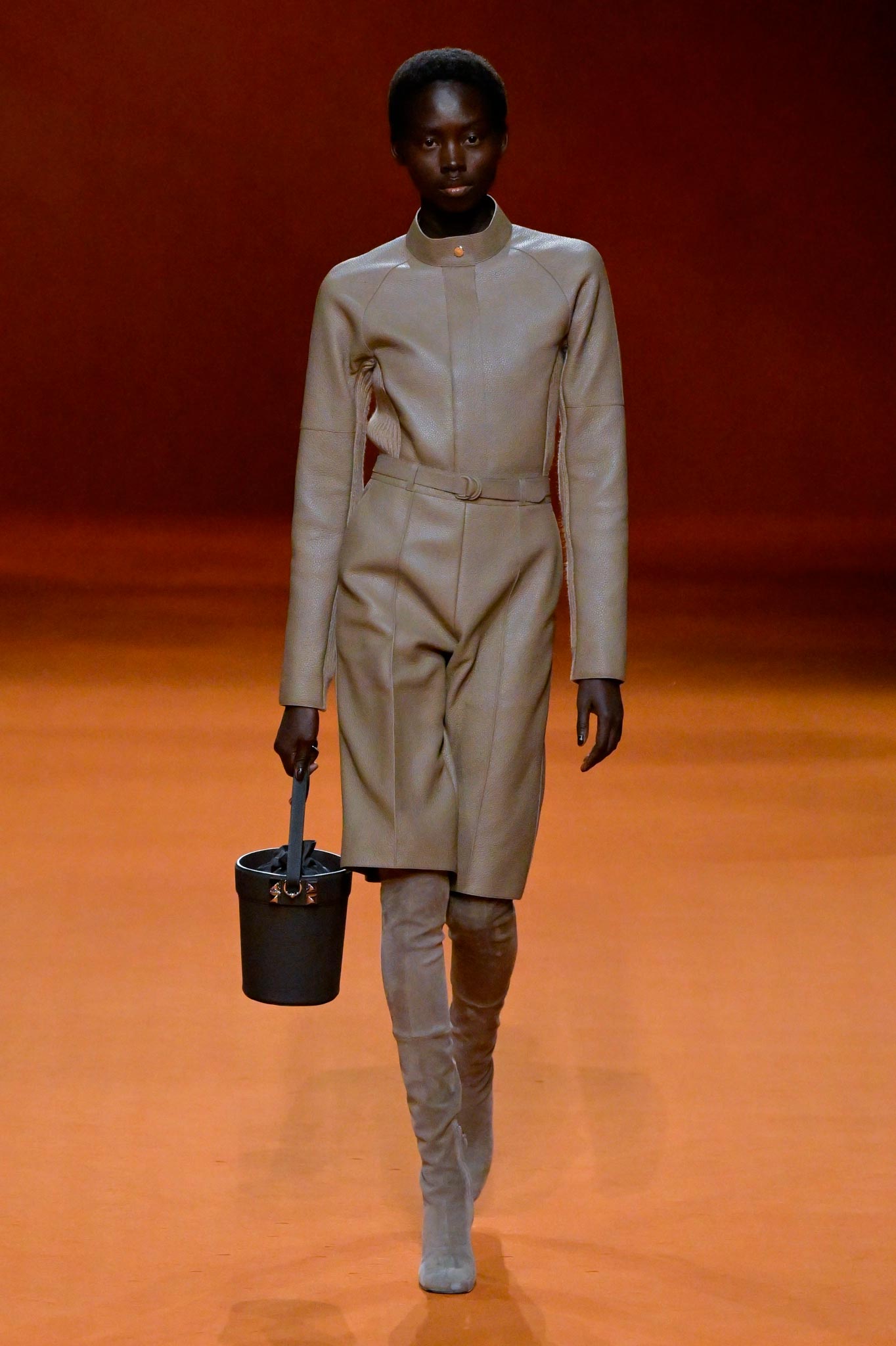 Ao fim do desfile, ela mesma apareceu com seu novo corte de cabelo, botas vermelhas e um casaco longo de couro, dando para os espectadores um último vislumbre de seu momento criativo. Durante a apresentação, foram 68 looks – em sua maioria monocromáticos, como é costume na Hermès – que reuniram todos os atributos que são favoritos entre suas clientes: a mistura de materiais de qualidade, as brincadeiras elegantes com texturas, os cortes precisos de alfaiataria e os toques visuais inesperados (mas muito bem-vindos), como os tricôs trançados de formas despojadas.