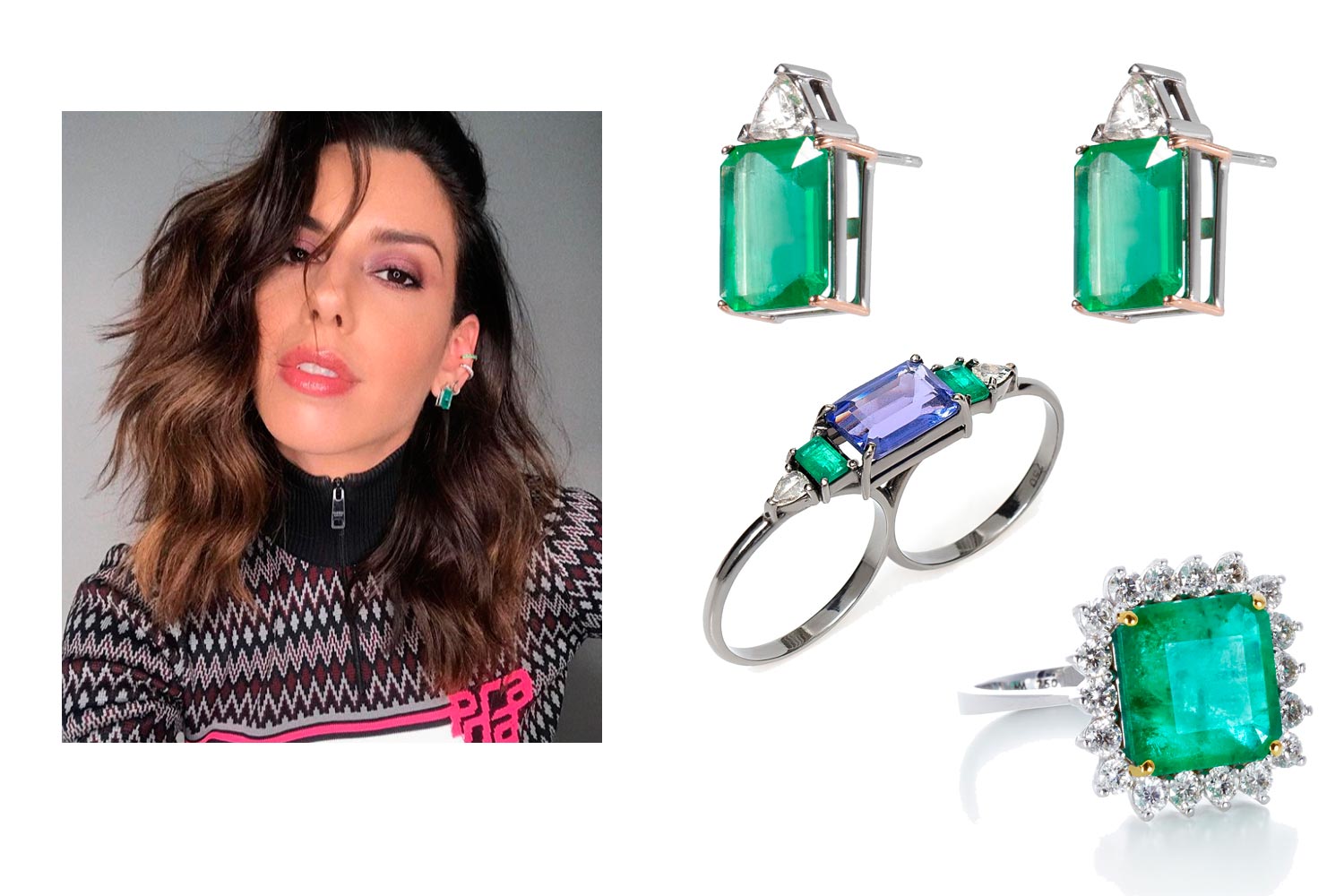 As peças escolhidas pela influencer digital foram brinco de esmeralda e diamantes (R$ 63.100), anel de esmerada e diamantes (R$ 19.200 e outro anel duplo de esmeralda, tanzanita e diamantes (R$ 17.600).