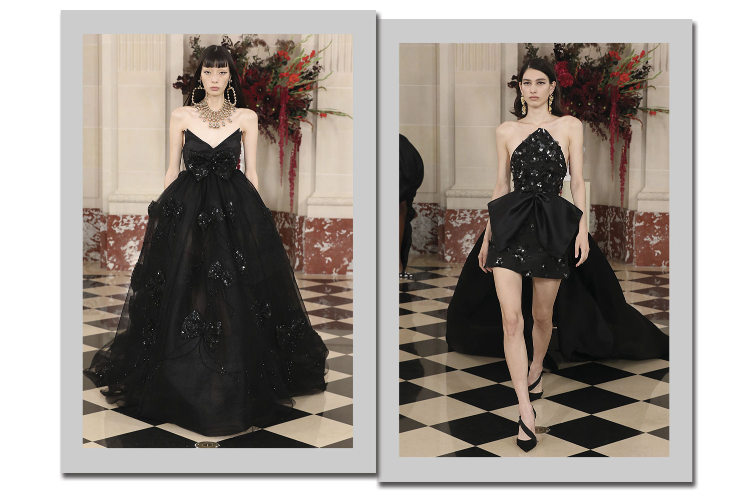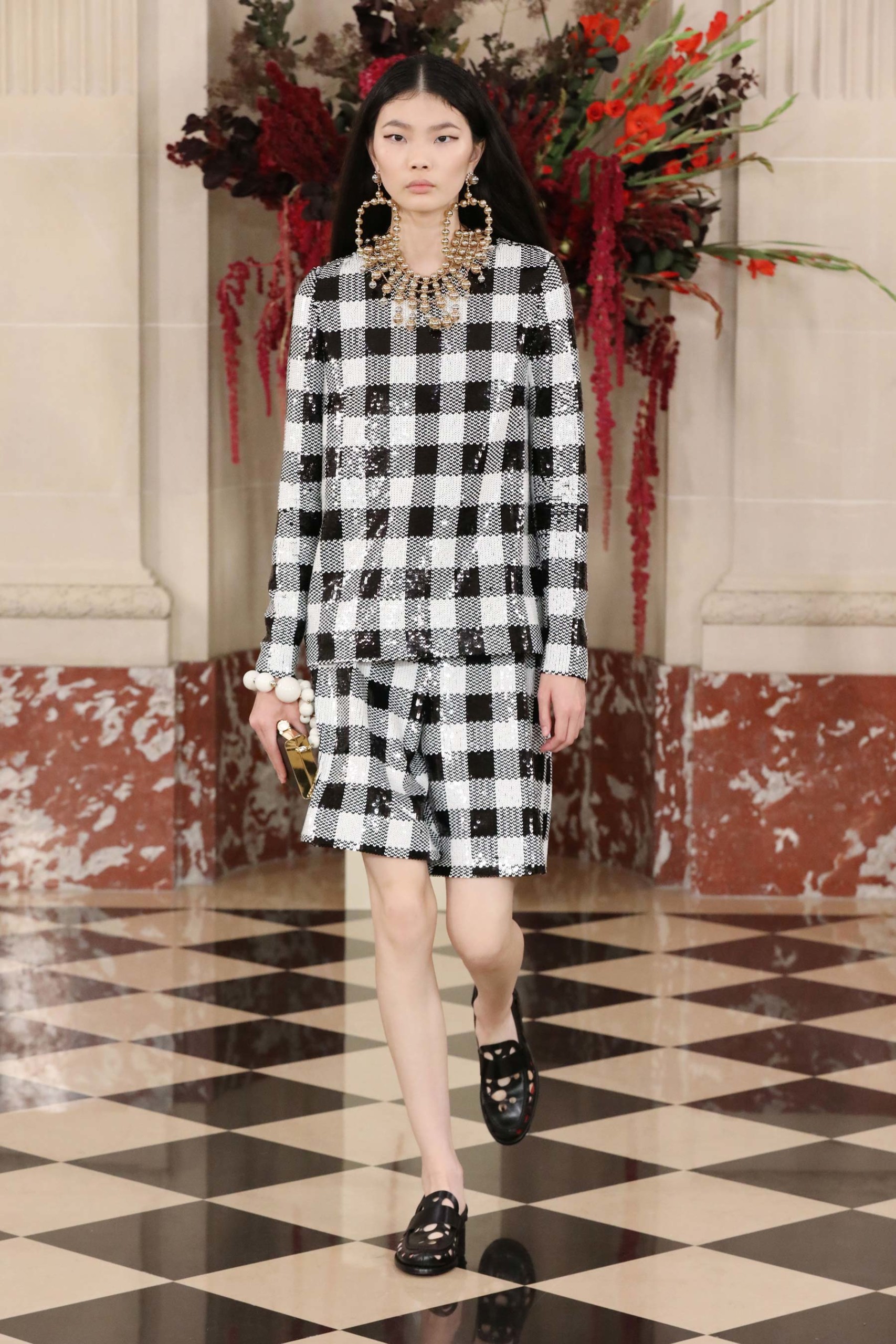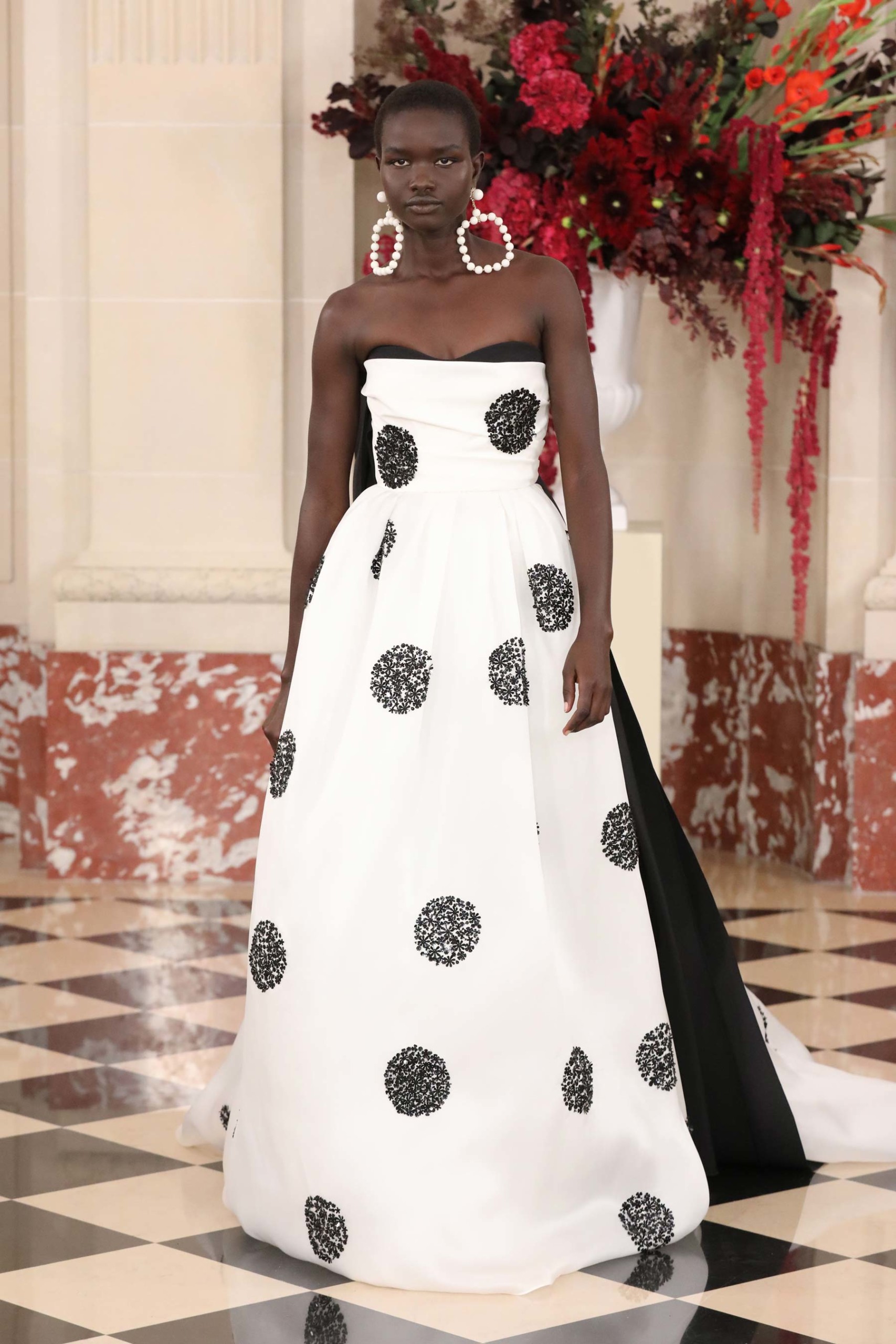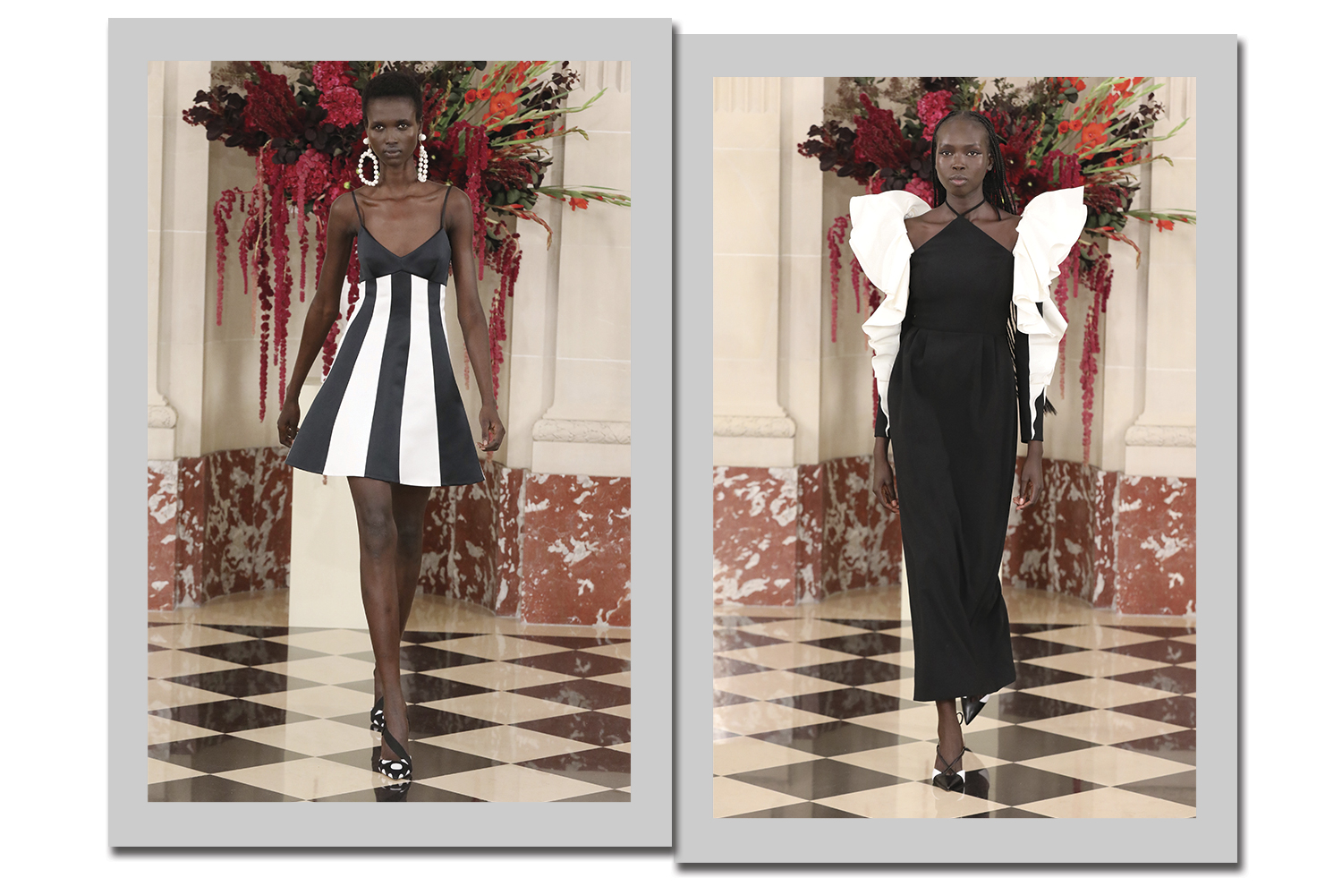 Carolina Herrera sempre foi fascinada pela dupla preto e branco, que apareceu com força em vários looks do início do desfile.