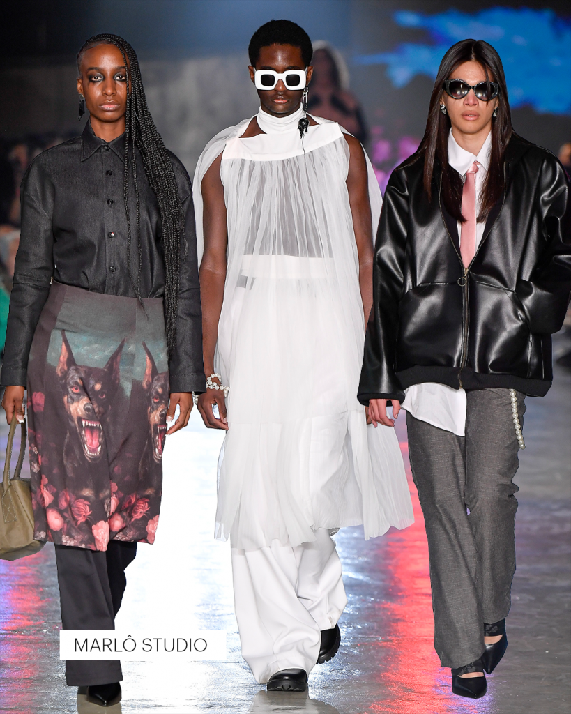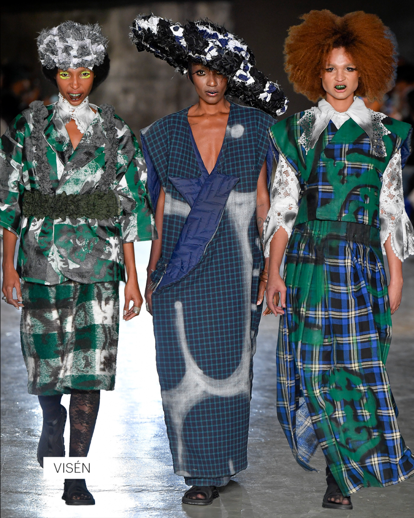 Encerrando a noite, a Visén apresentou “Visceral” — uma coleção feita a partir de um ensaio criado com inteligência artificial. Grafites e xadrez marcam as peças, em um olhar distópico sobre o caos urbano.