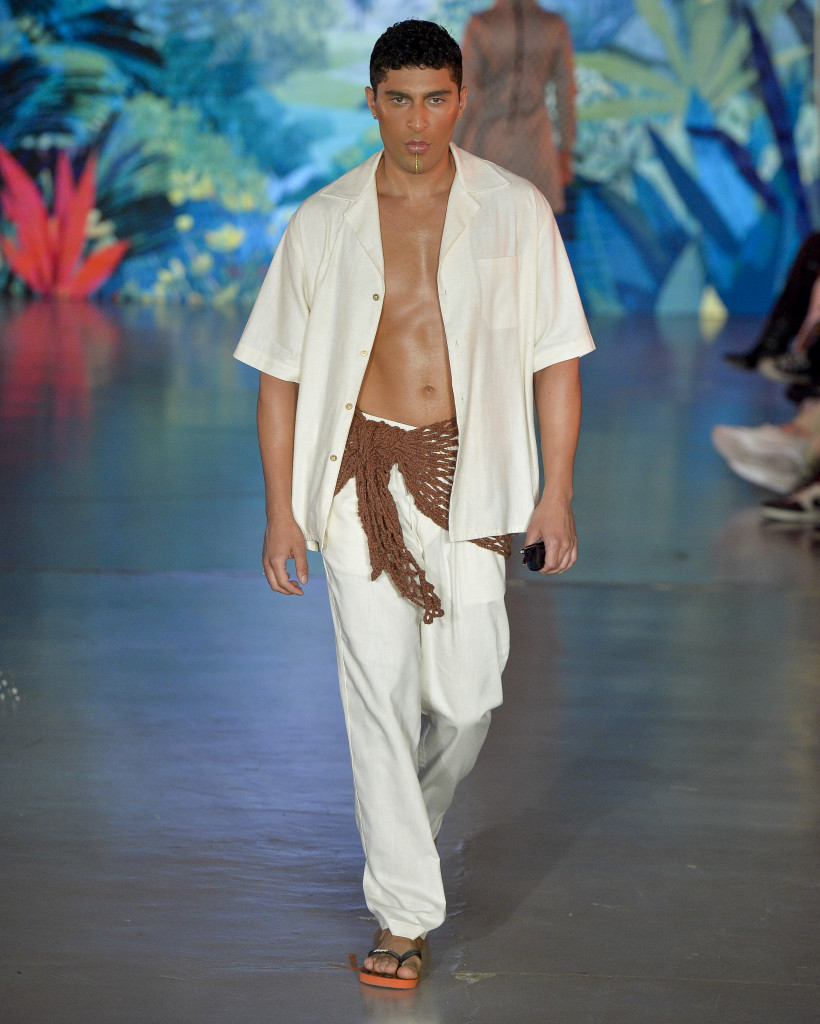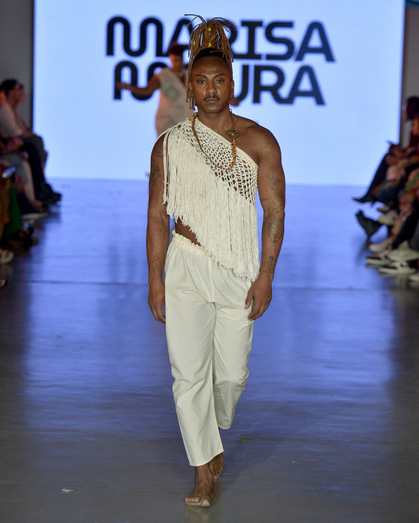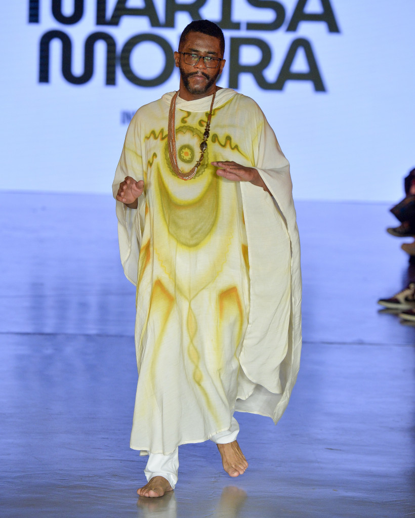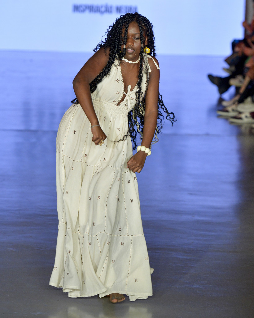 A Berimbau Brasil levou à passarela a Coleção Bori, inspirada no ritual ancestral que, nas tradições de matriz africana, celebra a nutrição espiritual do corpo e da alma. No desfile, esse gesto de cura e fortalecimento se traduz em cores, estampas e texturas que evocam acolhimento, luz e proteção.